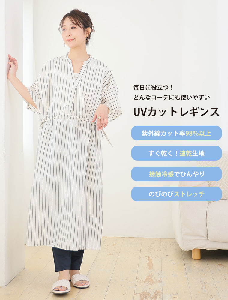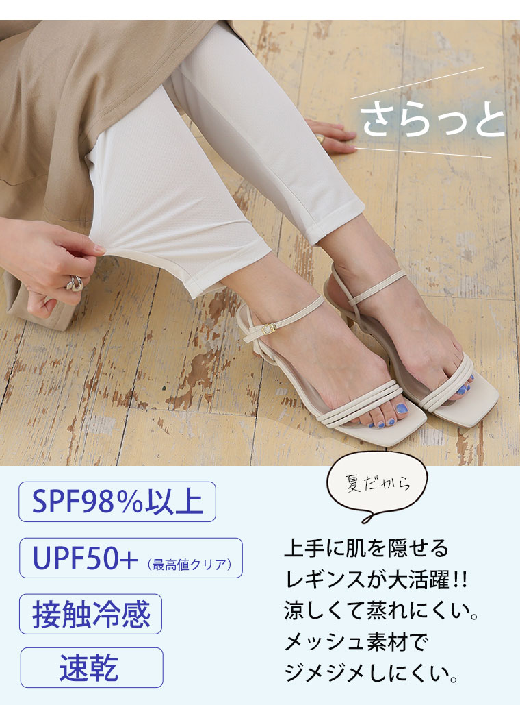 通気性の高いメッシュ素材なので、部屋着としても活躍するUVケアレギンス