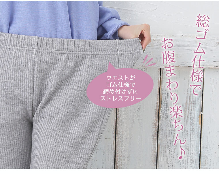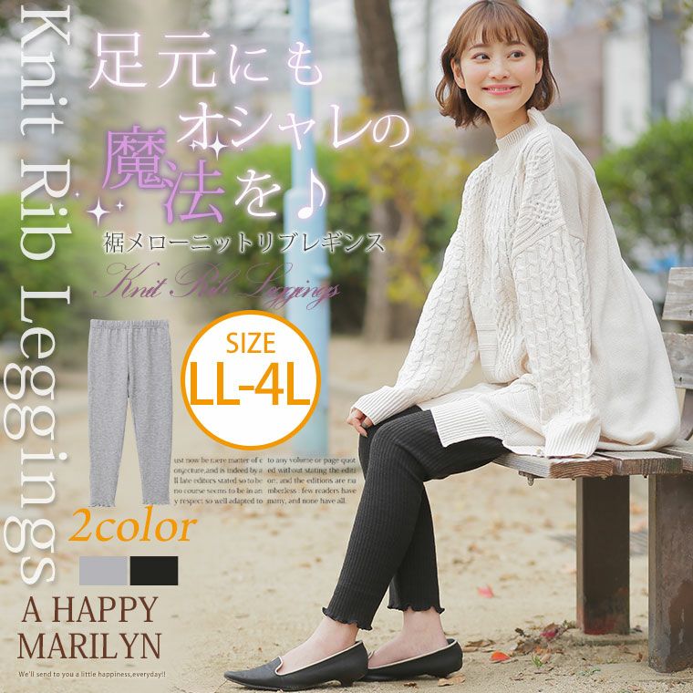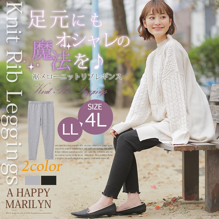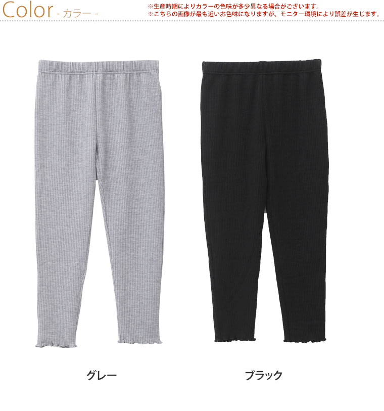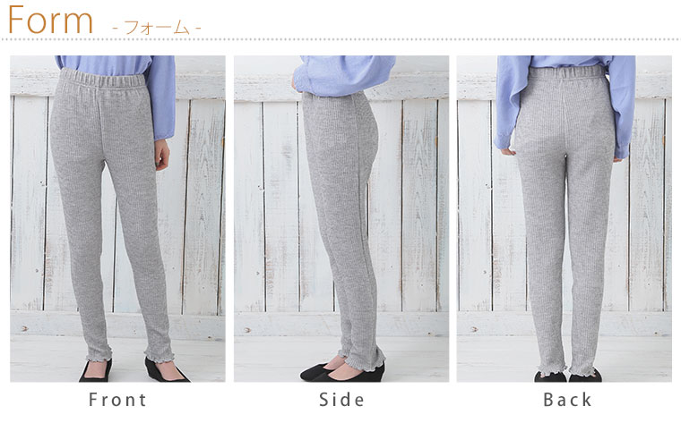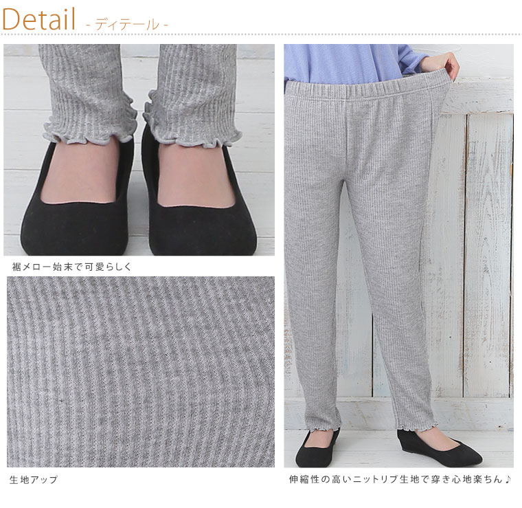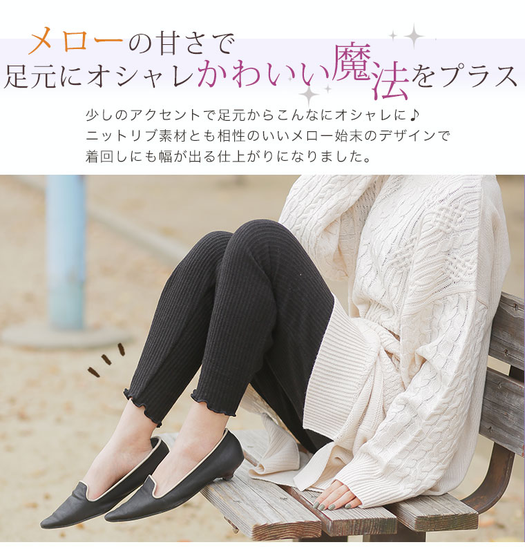 裾メロー始末で可愛らしく。適度な厚さのニットリブレギンス