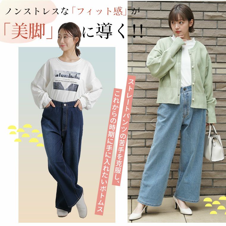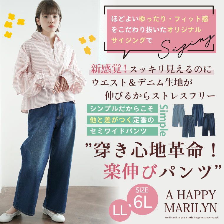 オリジナル ボトムス ルーズパンツ LL 3L 4L 5L 6L 夏 夏物 夏服 夏用 ぽっちゃり ゆったり お腹 太もも お尻 腰周り カジュアル マリリンオリジナル 選べる2丈 軽くてなめらか! さらり心地よい テンセルデニムワイドパンツ | 大きいサイズの通販ならハッピーマリリン