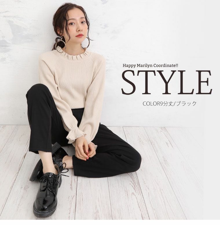 ボトムスには主に、パンツとスカートがあり下半身に着る衣服という意味があります。パンツにはトレンドのワイドパンツの他にチノパンツ、テーパードパンツ、定番のデニムなど様々な種類や素材があり、シーンよって使い分けることが可能です。ハッピーマリリンのボトムスはほとんどがウエストゴム仕様で楽ちんなのにおしゃれに着こなせるのもこだわりの一つです。定番のデニムも体型カバーが叶うハイウエストデニムやトレンドのワイドデニムの他にストレッチが効いたスキニーデニムなども大人気です。パンツだけでなく、デニムスカートも定番アイテムとして使えるアイテムで重宝間違いなしです。スカートはトレンドのプリーツスカートをメンズライクなアイテムで外して合わせるのがおすすめ。甘くなりすぎないコーデが今年顔です。フレアスカートは膝上丈よりも膝下の長め丈がトレンドです。スニーカーなどと合わせて、ほどよくカジュアルに魅せるのが可愛いです。春夏では普段モノトーンが多い方でも明るいカラーに挑戦しやすいので、くすみカラーのアイテムなどから取り入れてみると落ち着いたカラーコーデが楽しめます。また、タイトスカートも縦のラインが強調されるのでスタイルアップ効果は間違いなし。タイトスカートはやっぱり、足元にはヒールがキマリます。