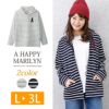 3. 大きいサイズ ガーゼミニ裏毛 ミッキーマウス刺繍入り ボーダー柄 長袖 ジップアップ パーカー | 大きいサイズの通販ならハッピーマリリン