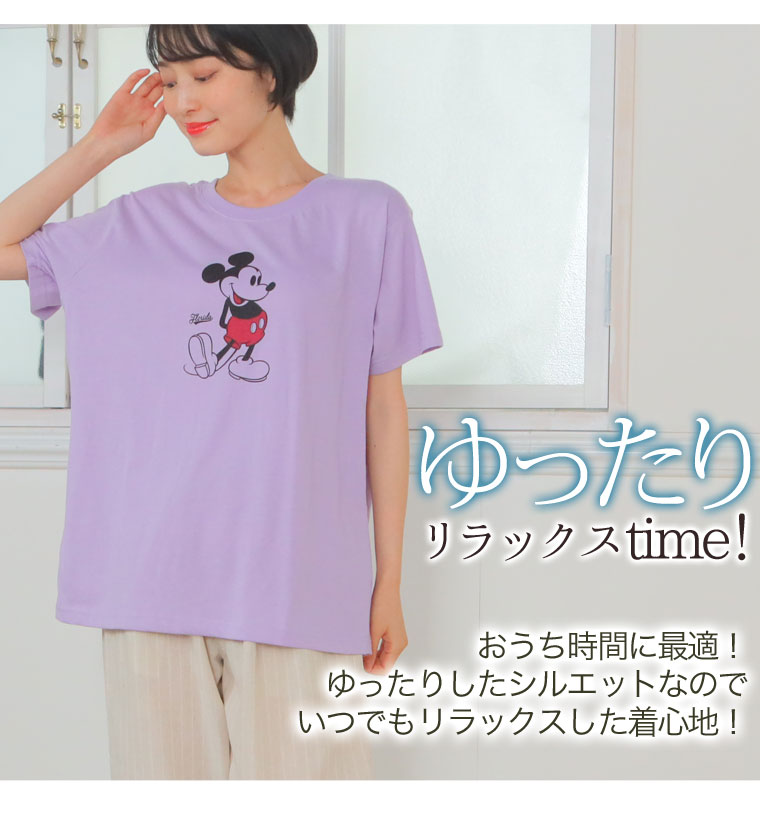 トップス tシャツ カットソー LL 3L 夏 夏物 夏服 夏用 ぽっちゃり ゆったり お腹 胸周り 二の腕カバー 五分袖 かわいい キャラクター Disney 半袖 プリント Tシャツ(MICKEY)