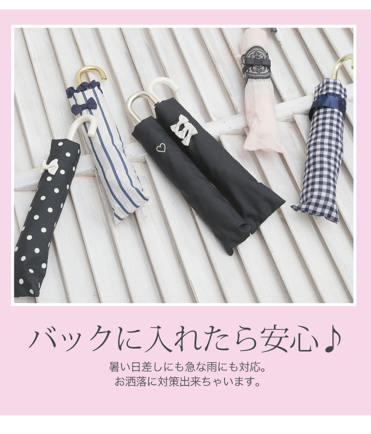洗練されたガーリッシュデザインでお洒落に。雨晴兼用折りたたみ傘