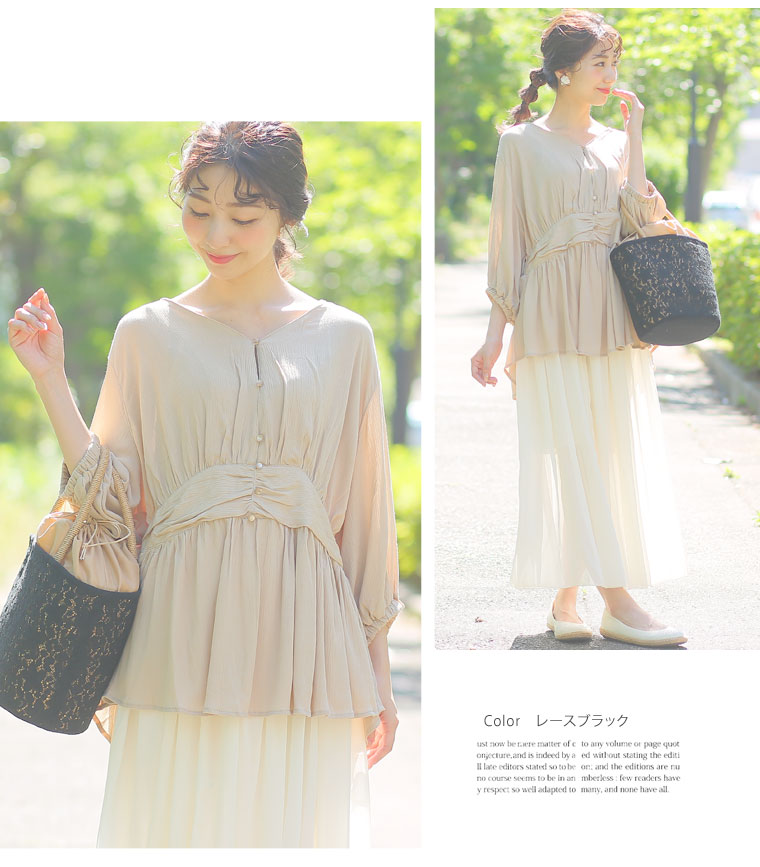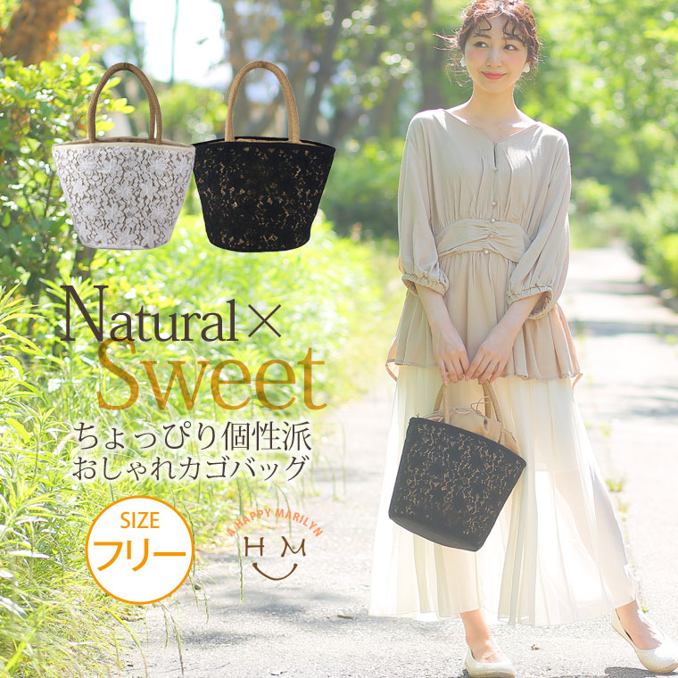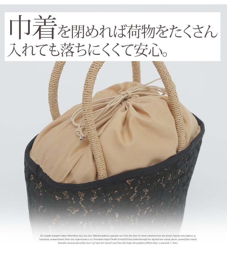 総レースデザインで華やかなアクセントに。華やかカゴバック