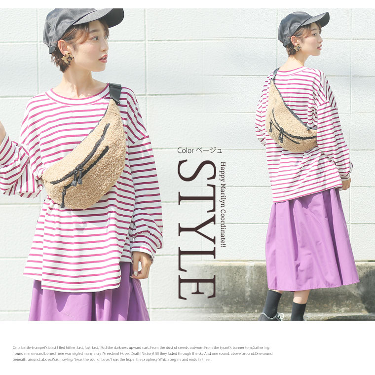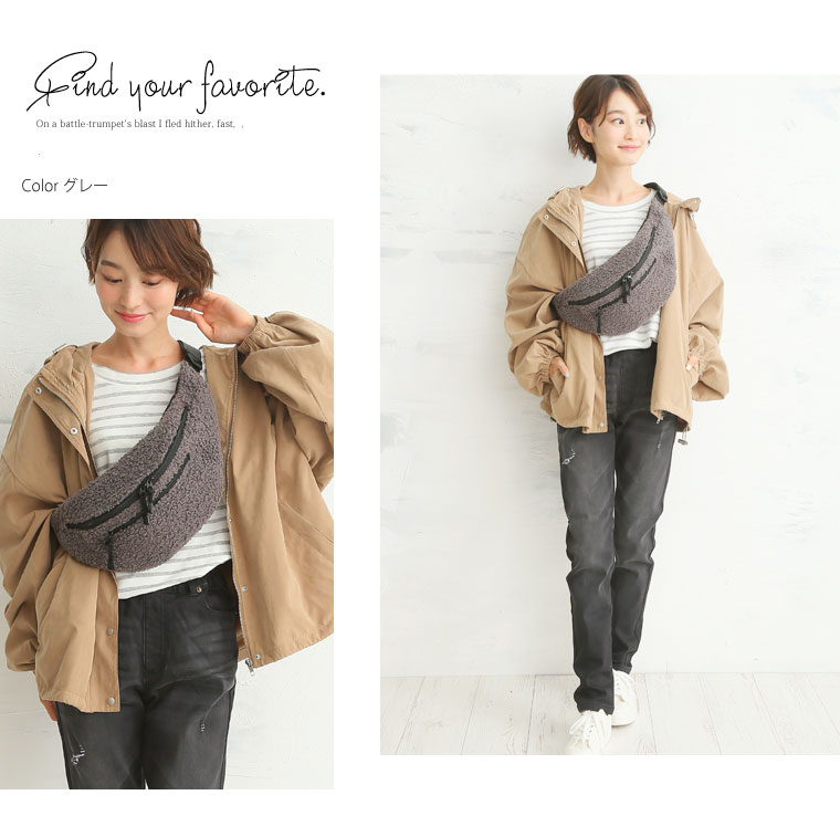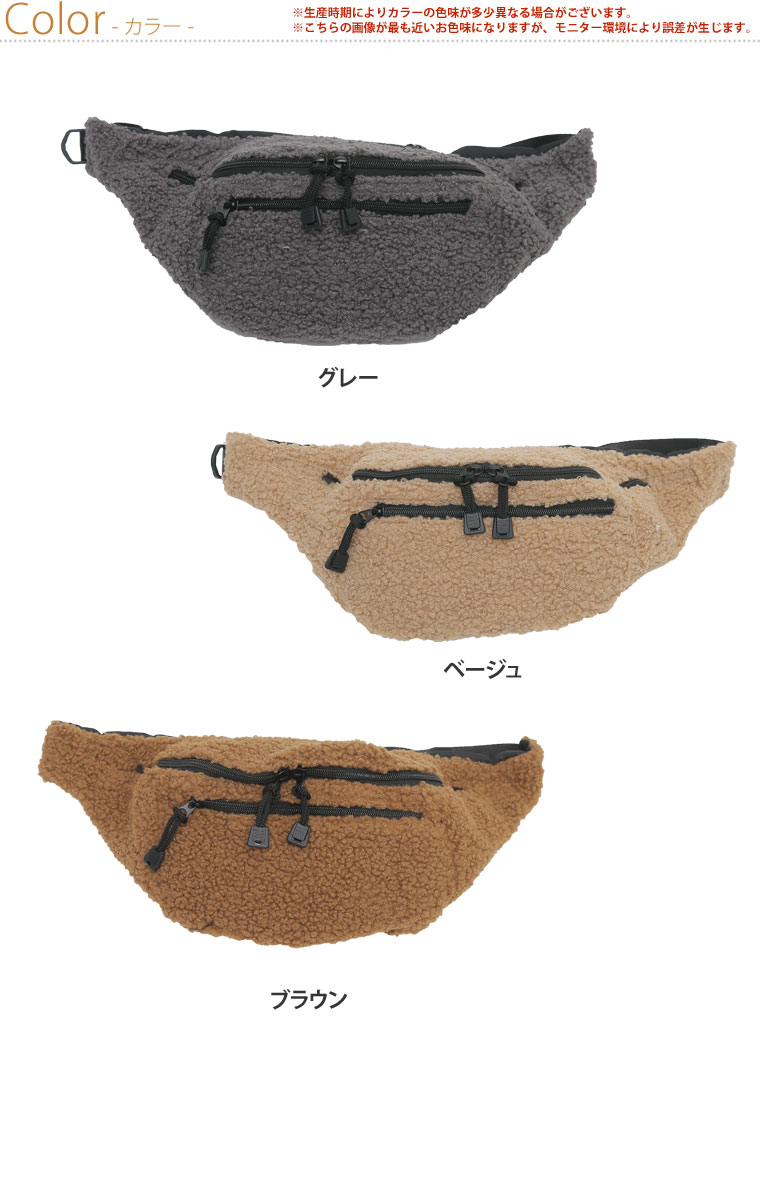 シープボアデザインでほっこり暖かなアクセント♪ウエストボディバッグ