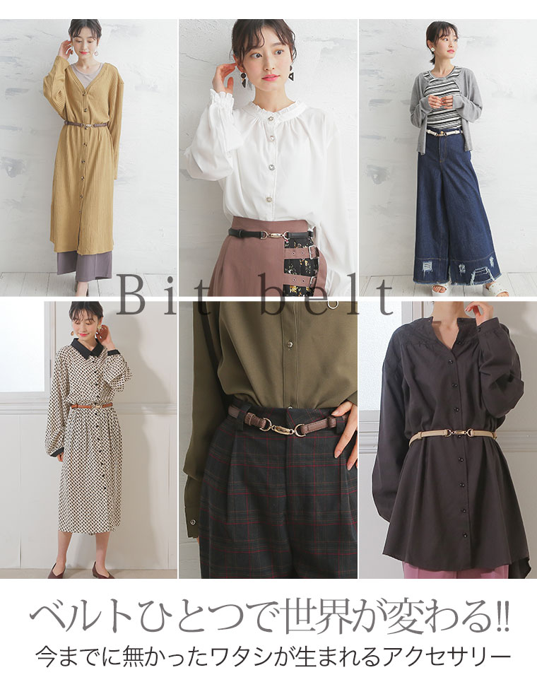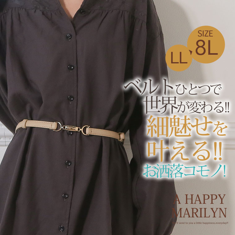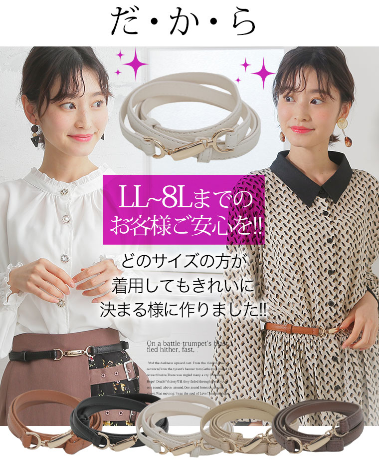 ぴったり調節でウエストマーク!!無地合皮デザインビットベルト