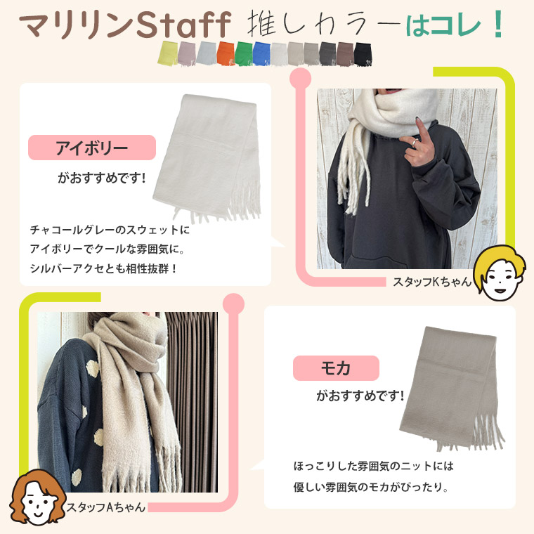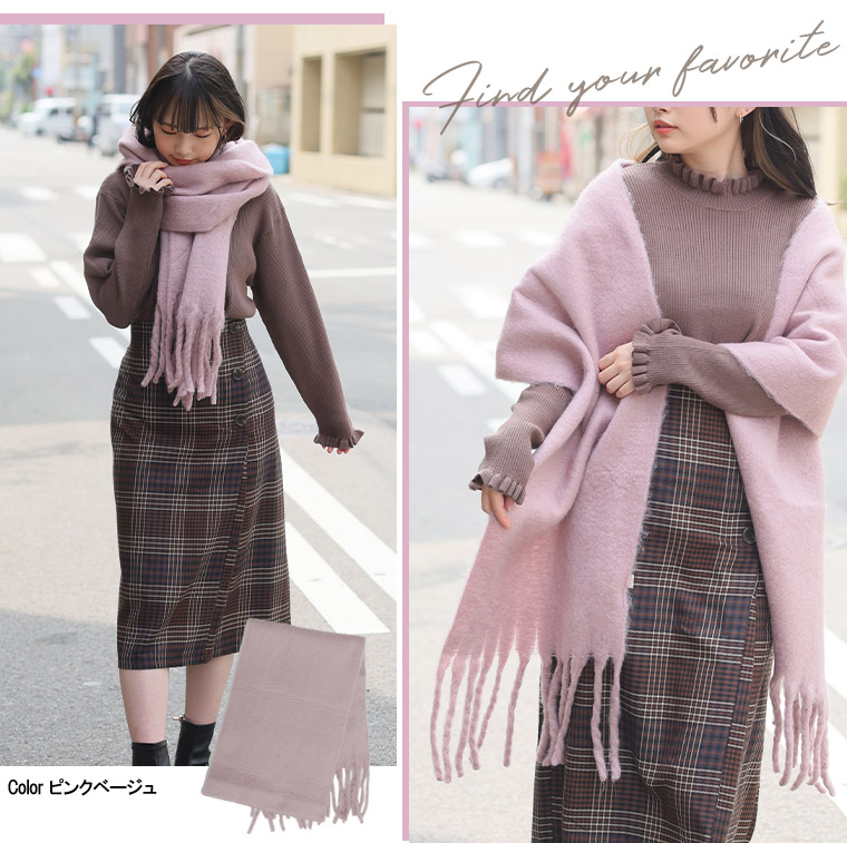 大きめサイズだから巻き方も自由自在!コーディネートに合わせて楽しめます