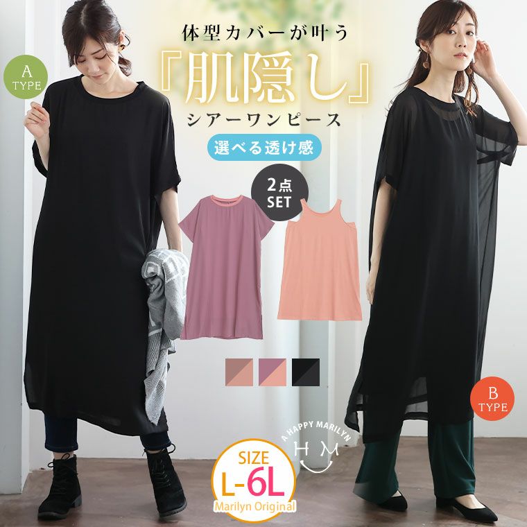 透け感を選べる インナー付きワンピース