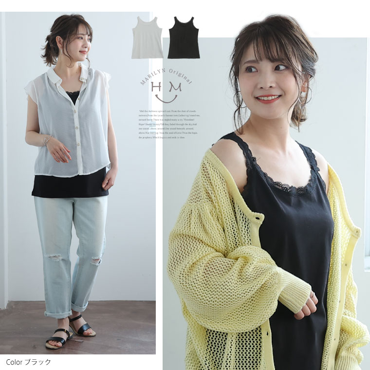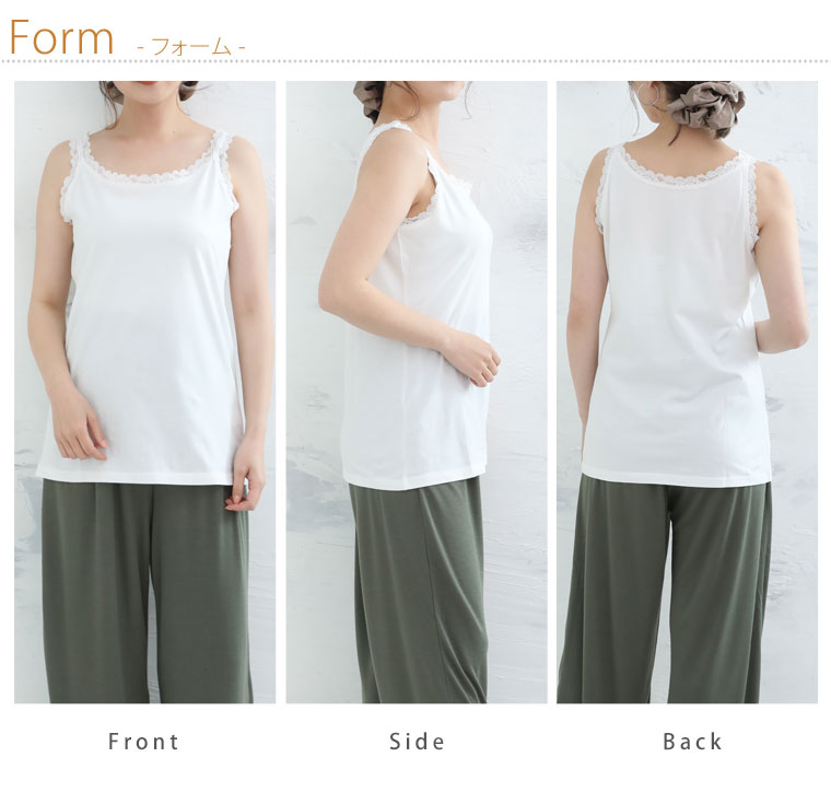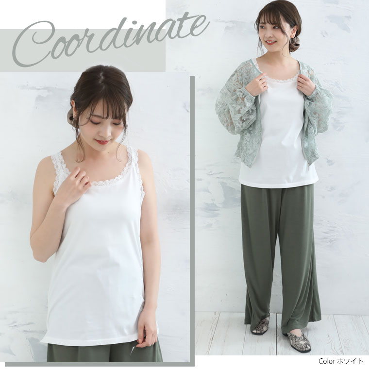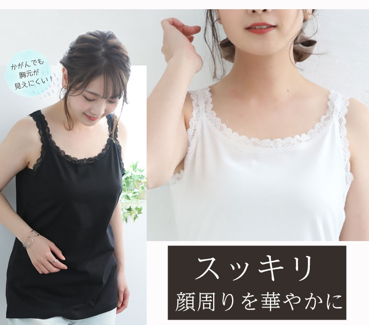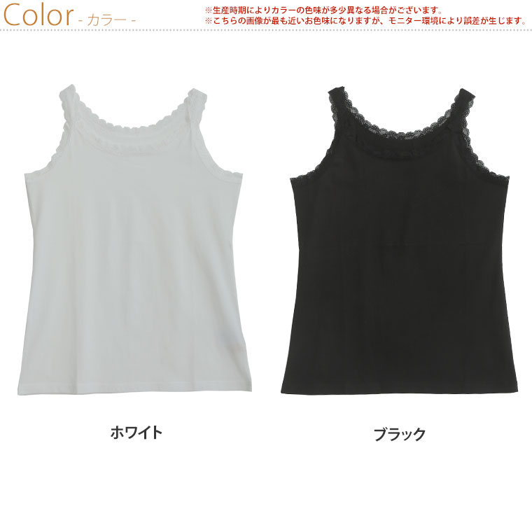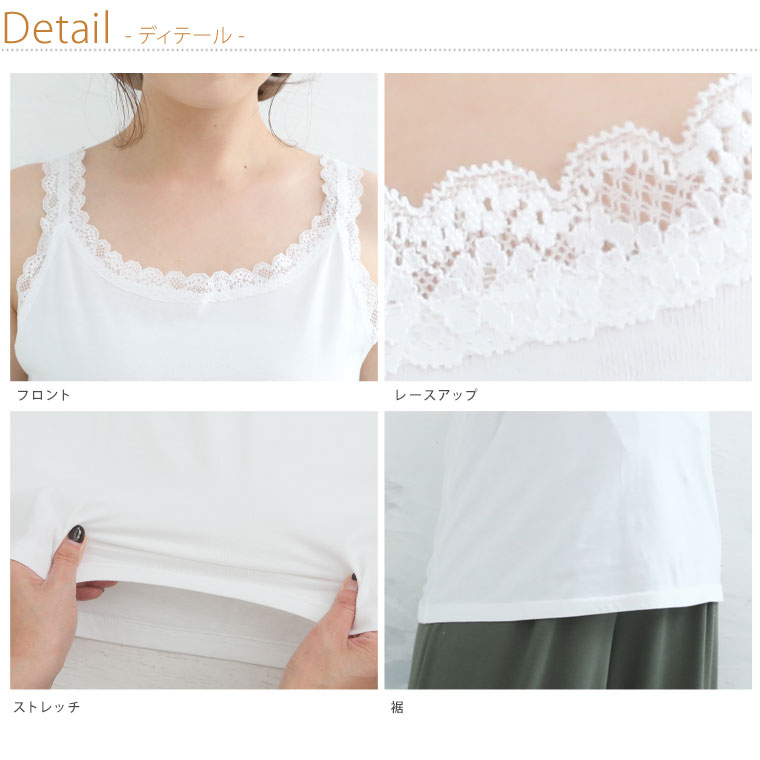 首元をきれいに魅せる 綿100%レース付きタンクトップ