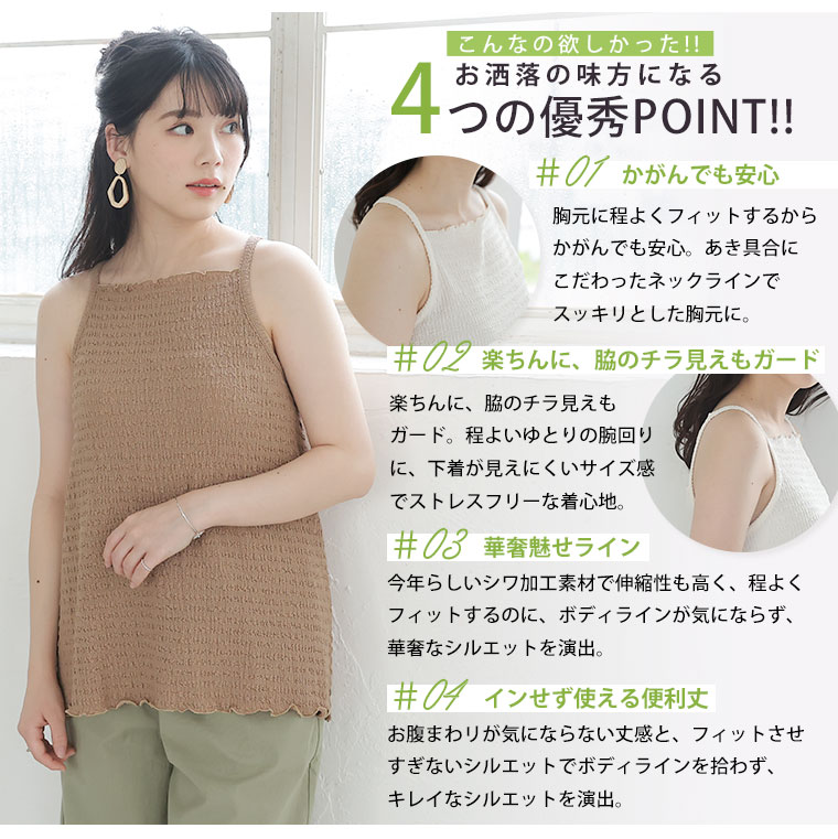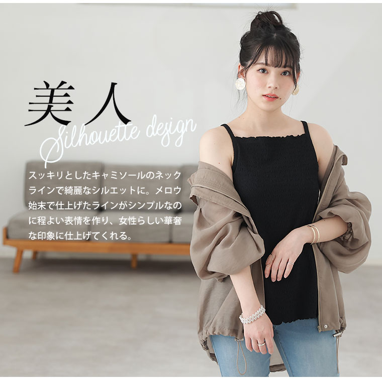 メロウ生地でお洒落に華奢魅せキャミソール