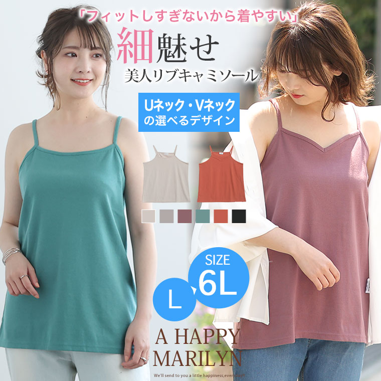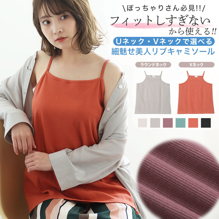 大きいサイズ フィットしすぎないから嬉しい! 選べる2デザイン 細魅せ テレコリブ 美人 キャミソール