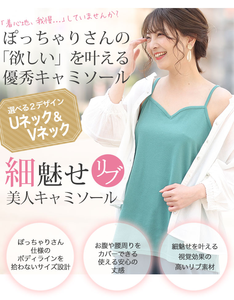 5. 大きいサイズ フィットしすぎないから嬉しい! 選べる2デザイン 細魅せ テレコリブ 美人 キャミソール