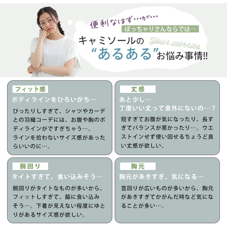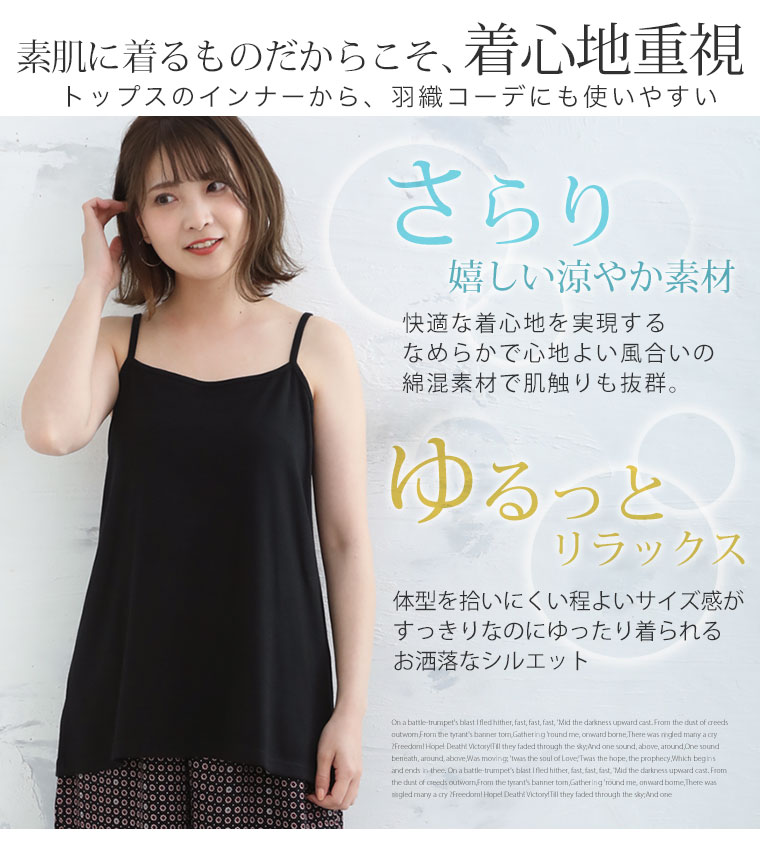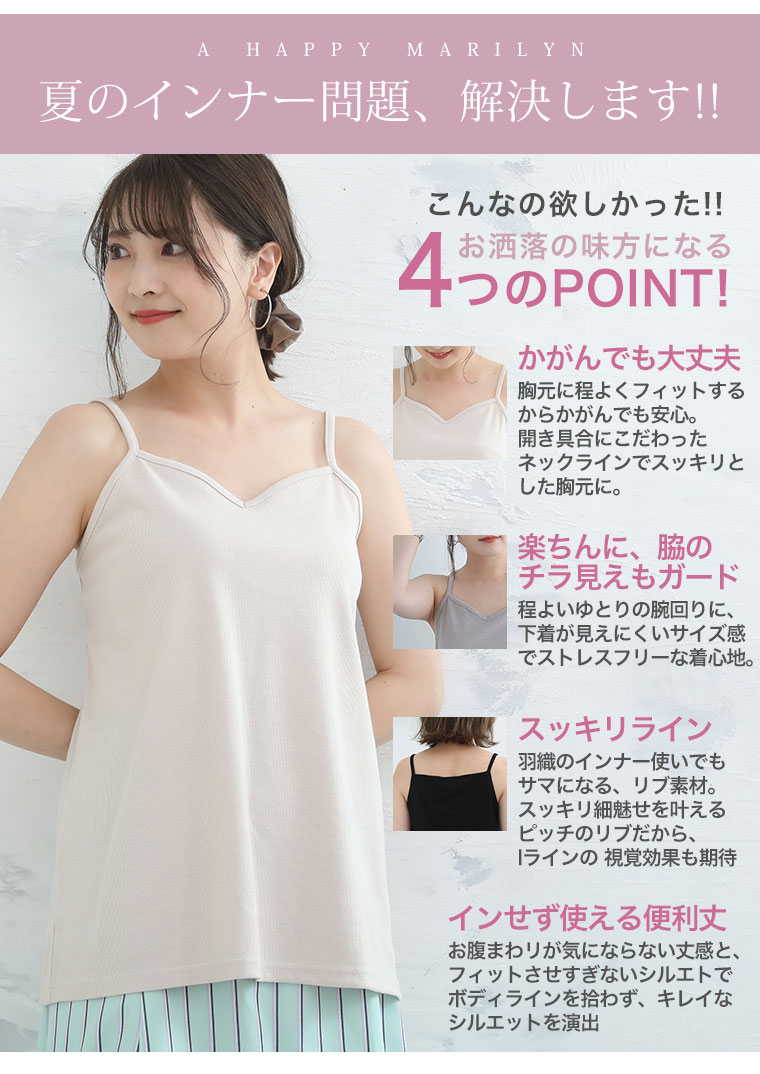 4. 大きいサイズ フィットしすぎないから嬉しい! 選べる2デザイン 細魅せ テレコリブ 美人 キャミソール
