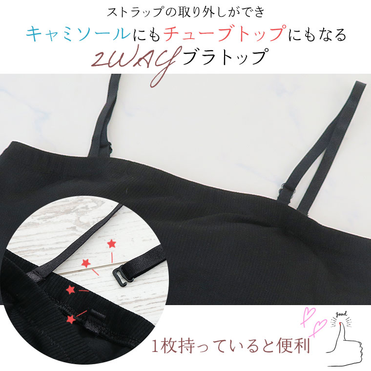 ストラップの取り外しができ、キャミソールにもチューブトップにもなる