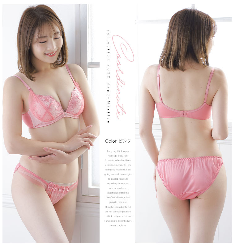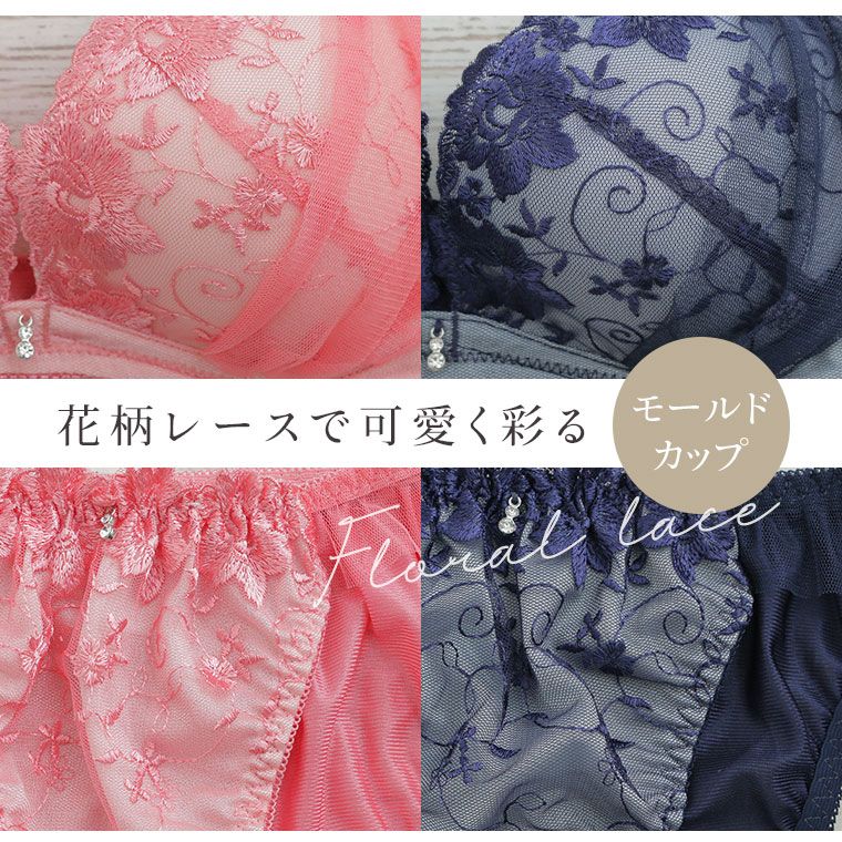 3. 大きいサイズ 花柄刺繍 ノンワイヤー ブラ&ショーツ セット