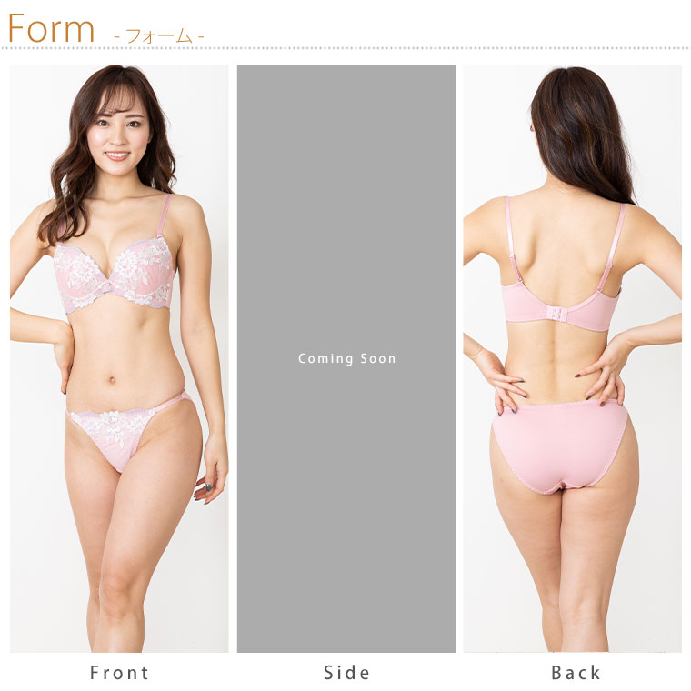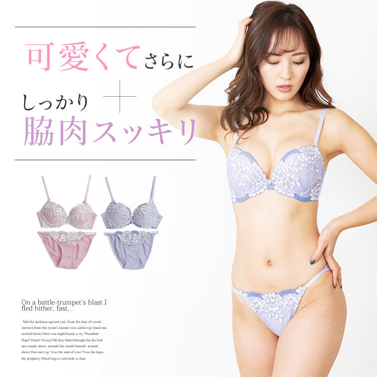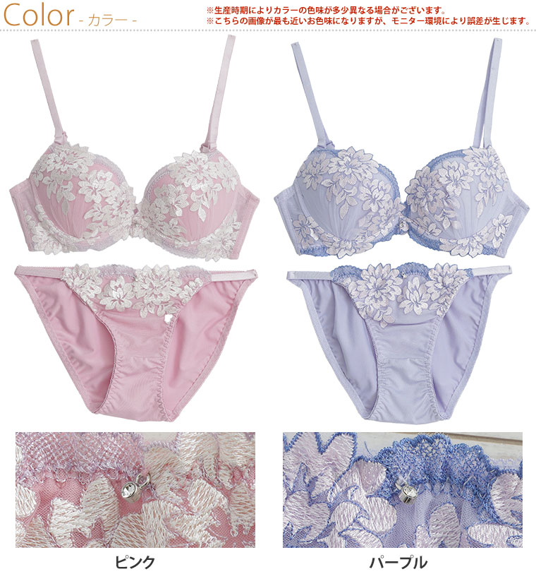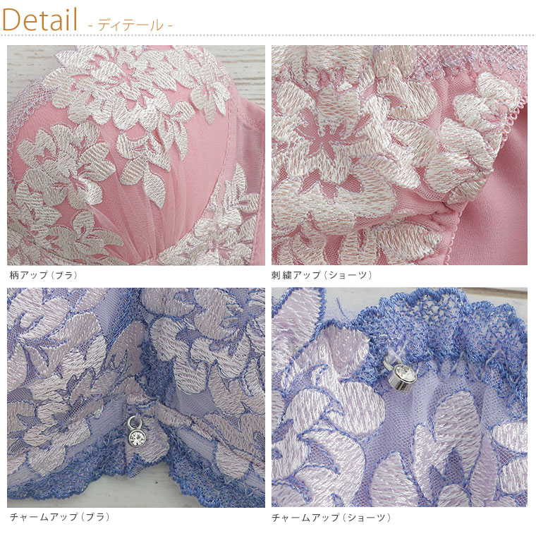 脇高 フェミニン刺繍がかわいいブラ・ショーツセット