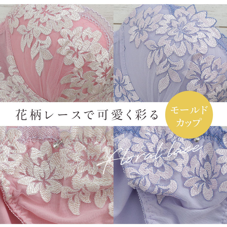 インナー 下着 ブラジャー & ショーツ ブラショーツ セクシー C D E F G 夏 夏物 夏服 夏用 ぽっちゃり 脇スッキリ 着やせ モールドカップ 2点セット 脇高 フェミニン フルール刺繍 ブラセット