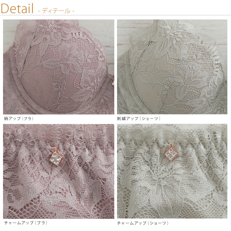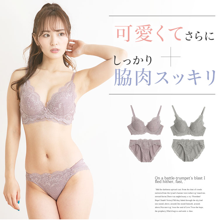 インナー 下着 ブラジャー&ショーツ ブラショー C D E F G 夏 夏物 夏服 夏用 ぽっちゃり 脇スッキリ 2点セット 上下セット ランジェリー セクシー 脇高 アンティークフラワー ブラセット
