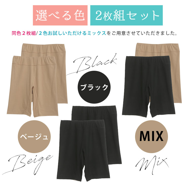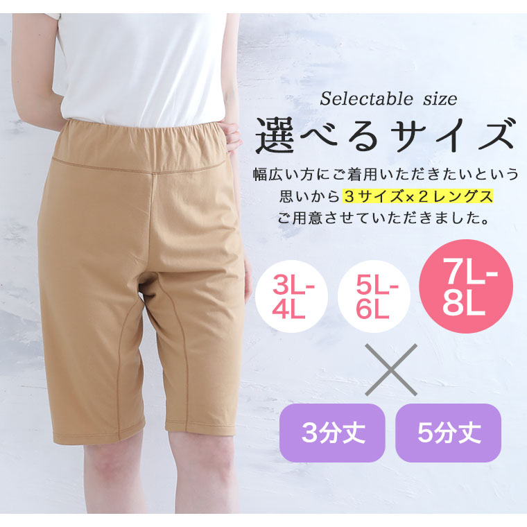 オリジナル ボトムス インナー 透け防止 スパッツ LL 3L 4L 5L 6L 7L 8L 秋 秋物 秋冬 ぽっちゃり お腹 お尻 腰周り 3分丈 5分丈 2枚セット 【選べる丈】秘密の 股ずれ防止 仕様 オーバーパンツ 【2枚組】