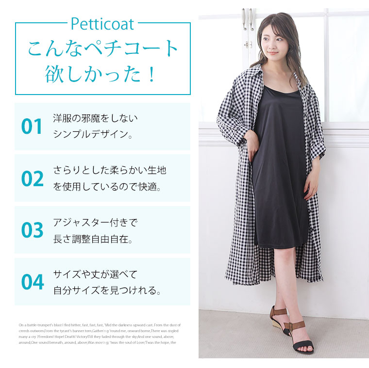 膝上丈と膝下丈のレングスが選べるペチワンピース