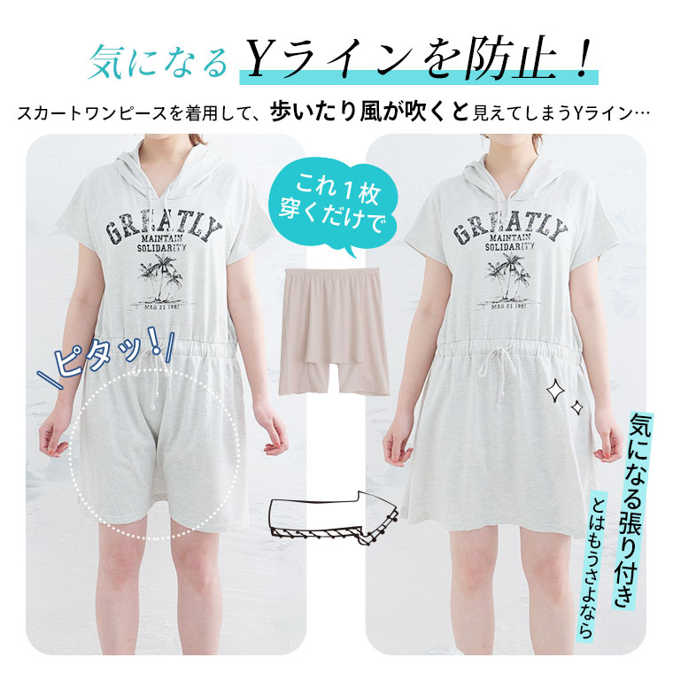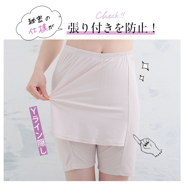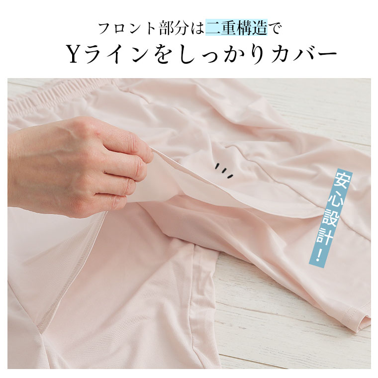 長めの股下でしっかり股ズレ防止するペアクールYラインカバーぺチパンツ