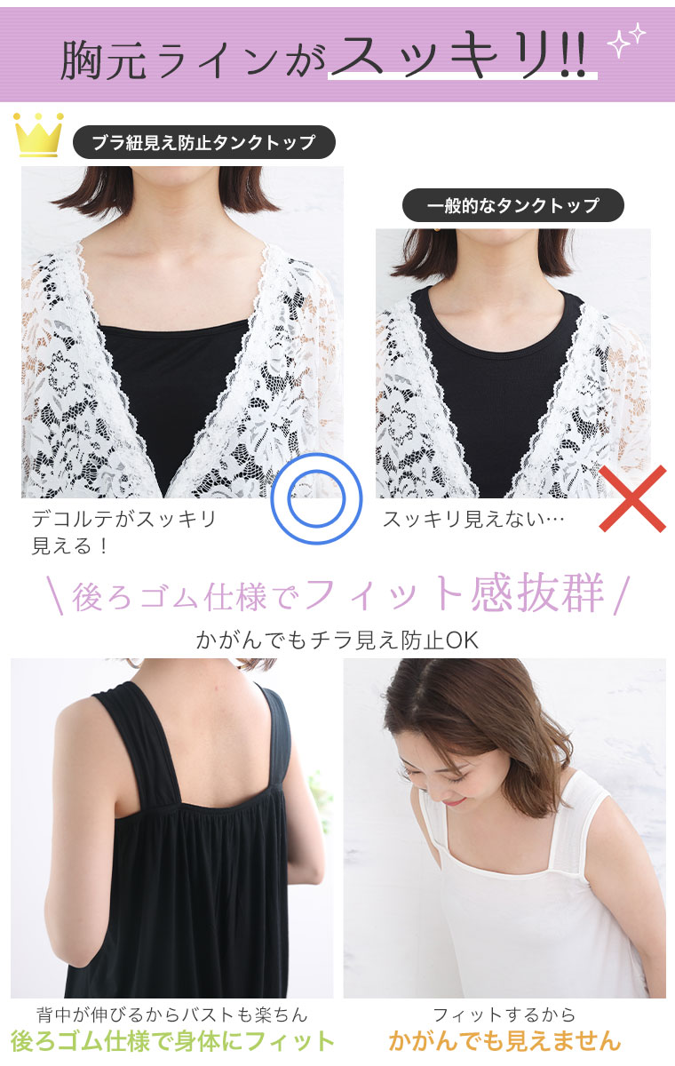 お洒落に自然に!ブラ紐が隠せるタンクトップ