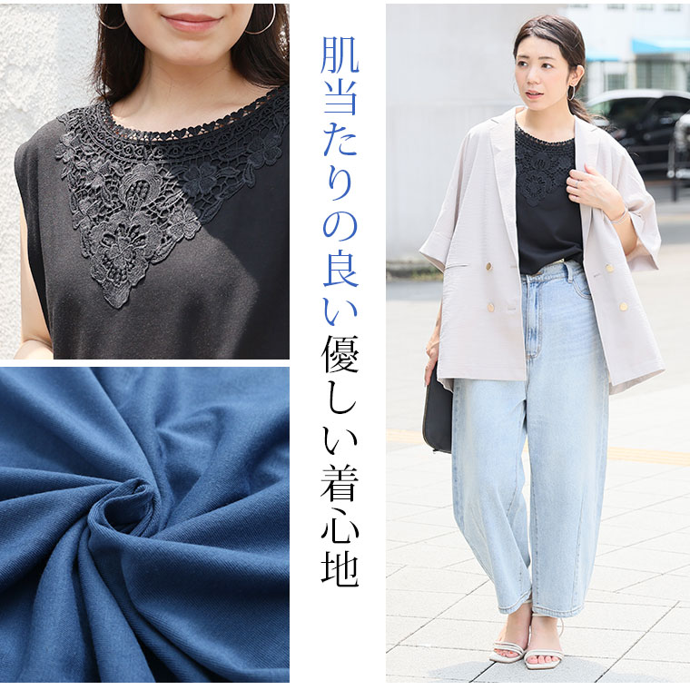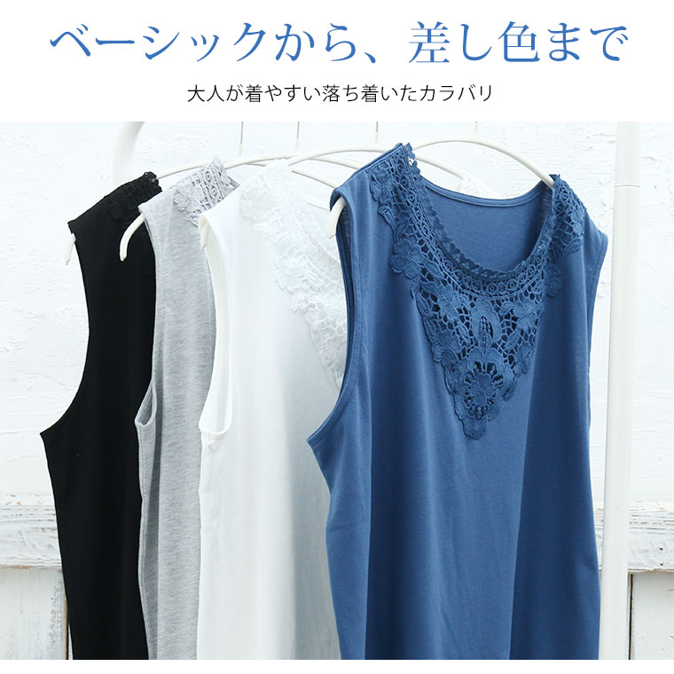 「IN」してデコルテ華やかレースタンクトップ