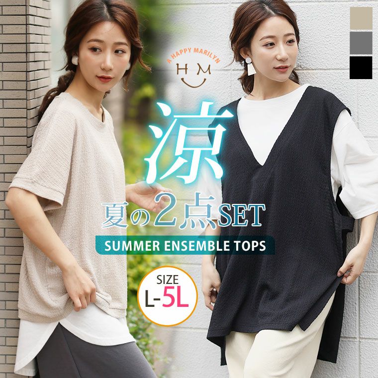 デザインが選べる夏の2点SET涼やか楊柳と重ねるアンサンブルTシャツ