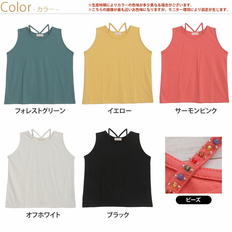 他の画像を見る オリジナル カットソー タンクトップ キャミソール LL 3L 4L 5L 6L 春 春物 春服 夏 夏物 夏服 ぽっちゃり ゆったり お腹 レイヤード 重ね着 インに着る カジュアル ナチュラル ビーズ ホルター デザイン インナー | 大きいサイズの通販ならハッピーマリリン 価格 ¥ 1,790 税込 3.89 在庫切れ お気に入りに登録する