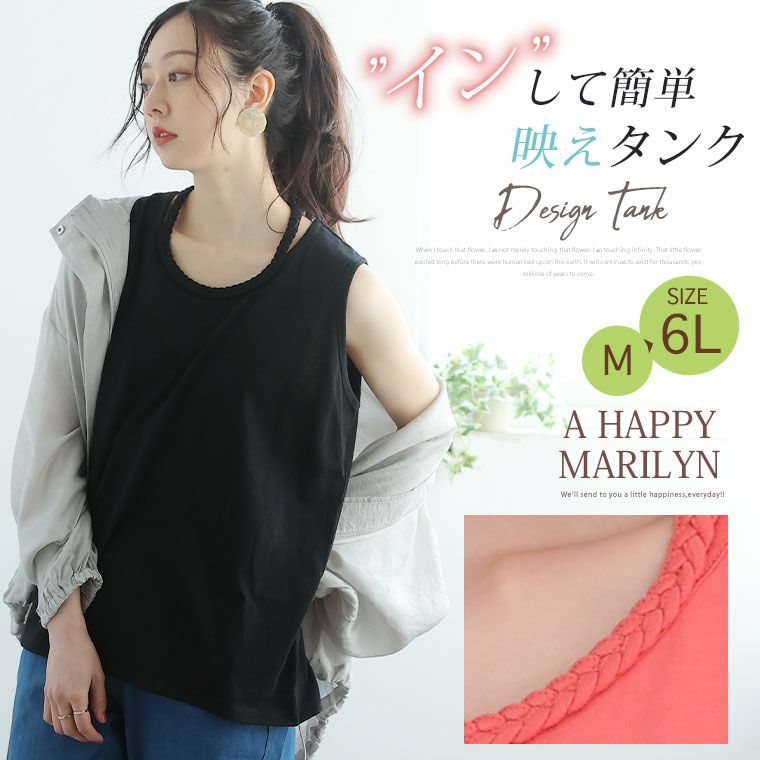 他の画像を見る オリジナル タンク インナー LL 3L 4L 5L 6L 夏 夏物 夏服 夏用 ぽっちゃり ゆったり カジュアル プラスサイズ 薄さが丁度よい 綿100% 選べるタイプ 裾異素材 レイヤード タンクトップ | 大きいサイズの通販ならハッピーマリリン 価格 ¥ 1,790 税込 3.86 在庫切れ お気に入りに登録する