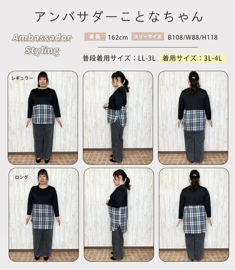 他の画像を見る オリジナル カットソー プルオーバー LL 3L 4L 5L 6L 冬 ぽっちゃり ゆったり お腹 お尻 七分袖 選べる 重ね着 レイヤード 温活 ★お洒落×体型カバーを叶える! 見せ裾 あったか 裏起毛インナー | 大きいサイズの通販ならハッピーマリリン SALE 定価 ¥ 2,190 のところ 価格 ¥ 1,750 税込 3.20 お気に入りに登録する