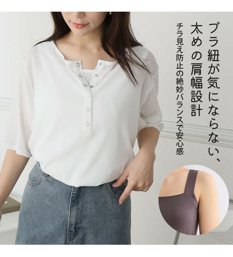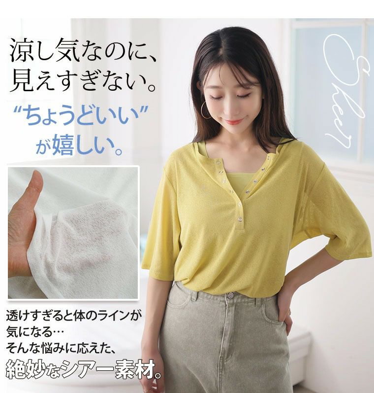 他の画像を見る プルオーバー インナー LL 3L 4L 5L 6L 半袖 夏 夏物 夏服 夏用 ぽっちゃり ゆったり 二の腕カバー 胸回り 丁度良い透け感 透けない涼し気シアー ヘンリーネック トップス & タンクトップ アンサンブル | 大きいサイズの通販ならハッピーマリリン 価格 ¥ 2,990 税込 4.00 お気に入りに登録する