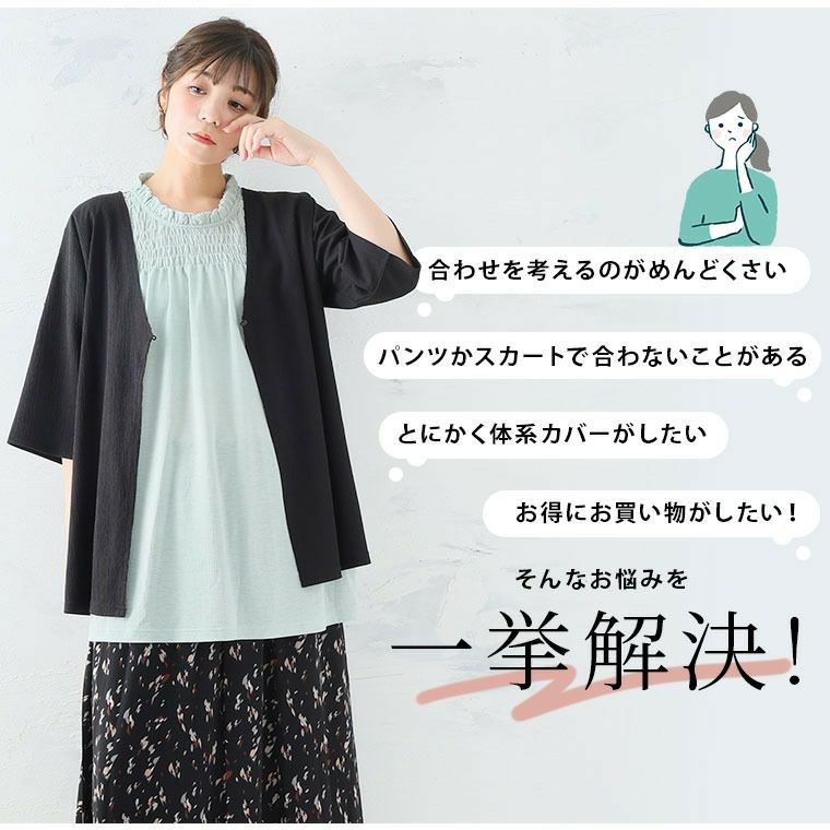 他の画像を見る セットアップ コーデセット 2点セット LL 3L 4L 5L 夏 夏物 夏服 ぽっちゃり ゆったり レイヤード 重ね着 カジュアル Tシャツ プラスサイズ 2typeから選べる 涼やか楊柳と重ねる アンサンブルTシャツ | 大きいサイズの通販ならハッピーマリリン 価格 ¥ 2,490 税込 4.17 お気に入りに登録する