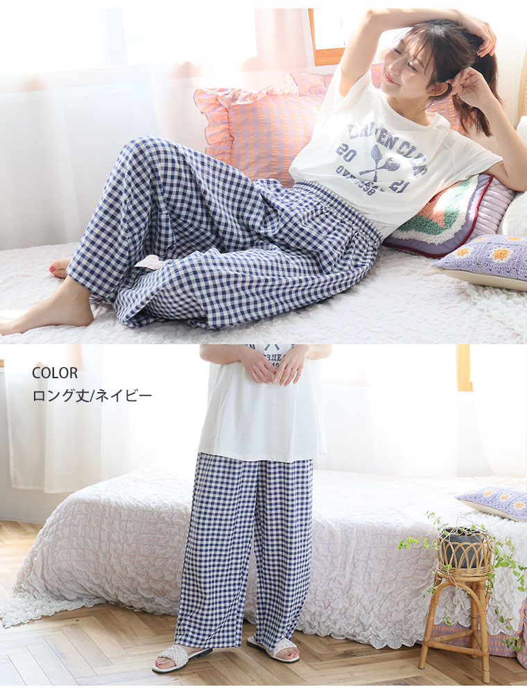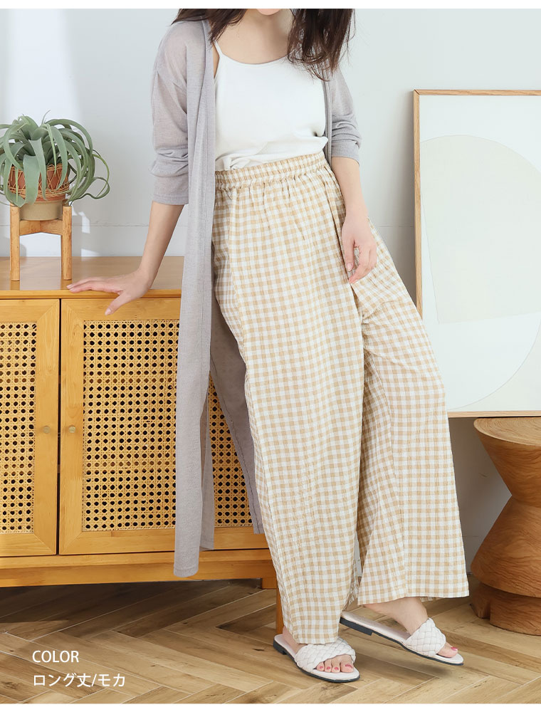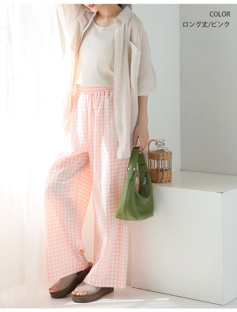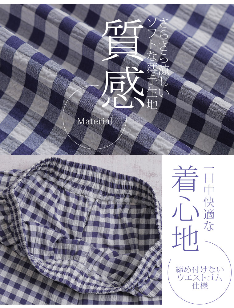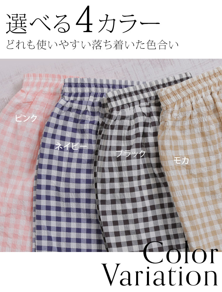 選べる2丈 着心地楽ちんサッカー素材のギンガムパンツ