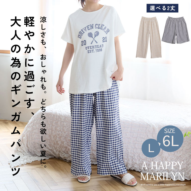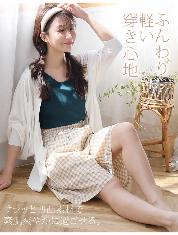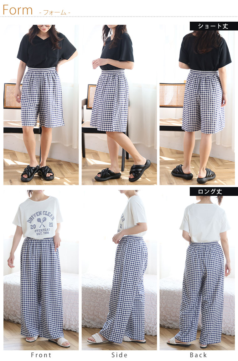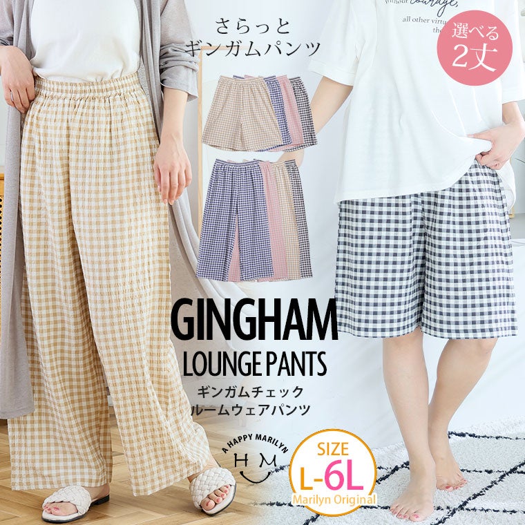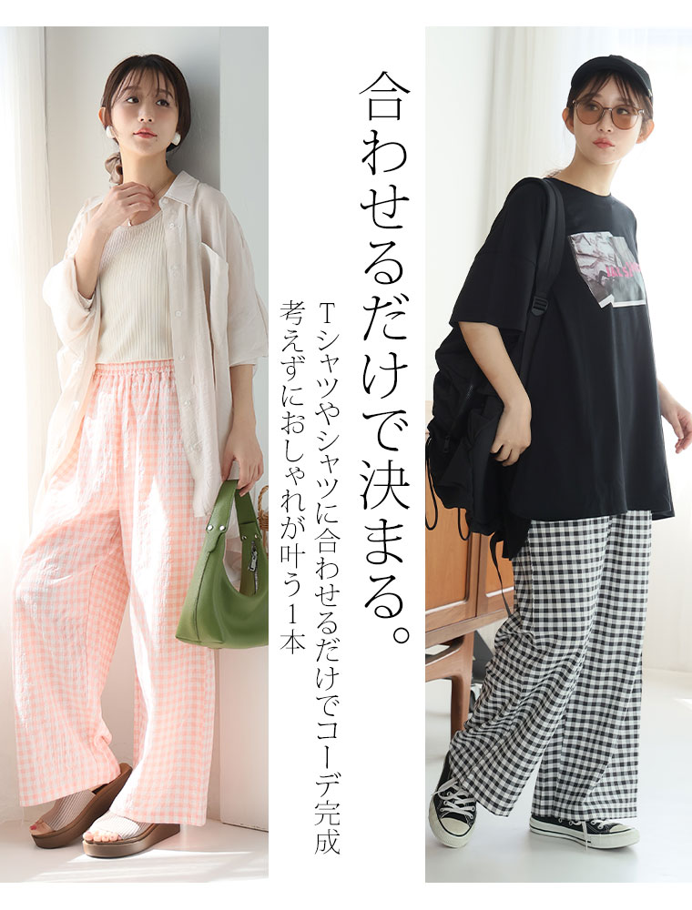 選べる2丈 着心地楽ちんサッカー素材のギンガムパンツ