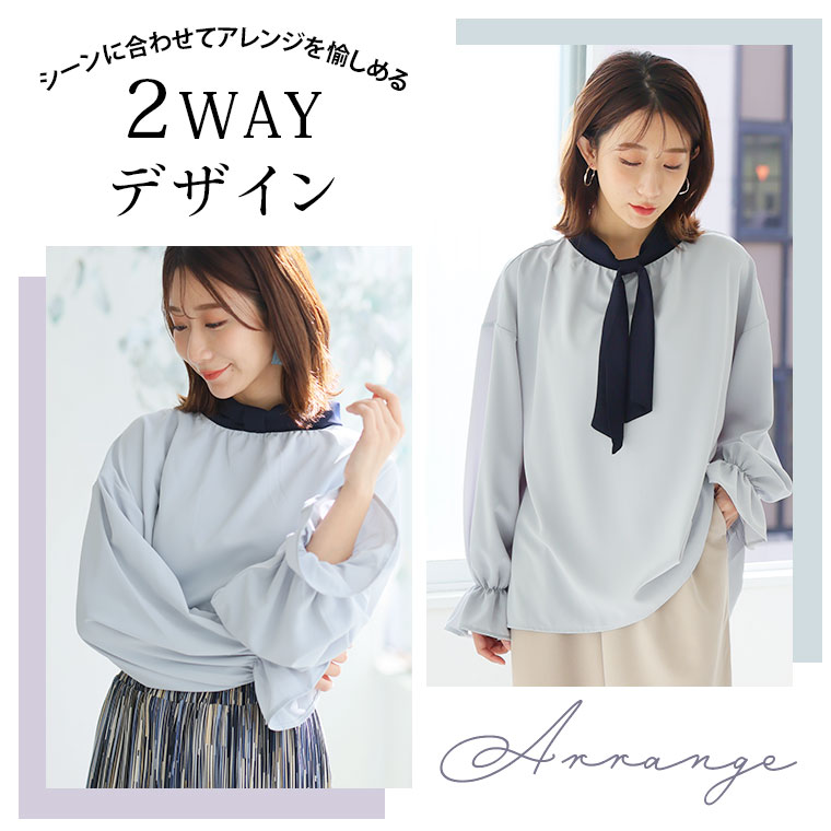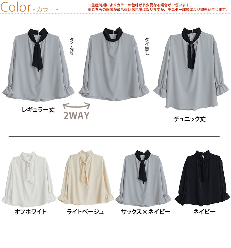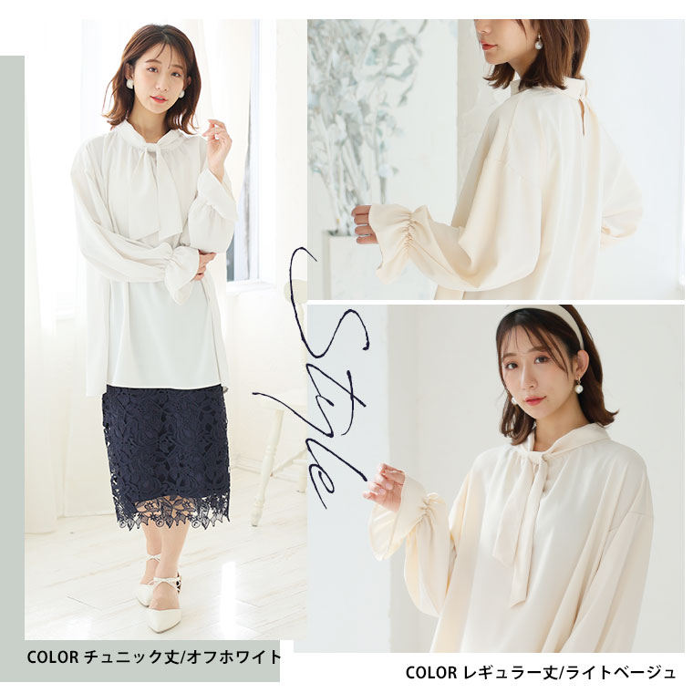 Rin レギュラー丈とチュニック丈から選べる丈リボンタイで2WAY 華やかブラウス