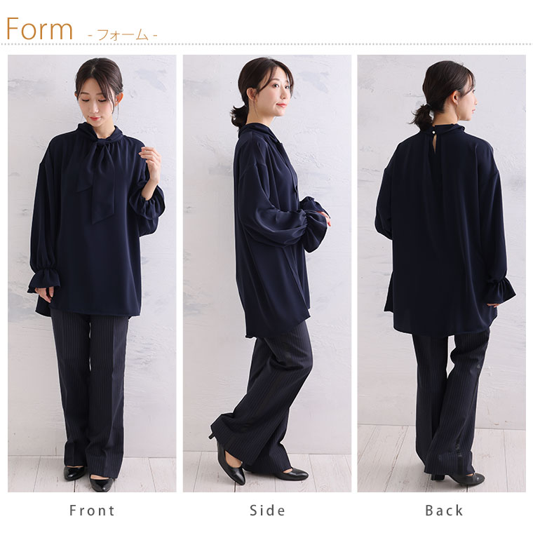 5. 大きいサイズ Rin 【選べる丈】 2WAY リボンタイ 華やかブラウス 【セレモニー】