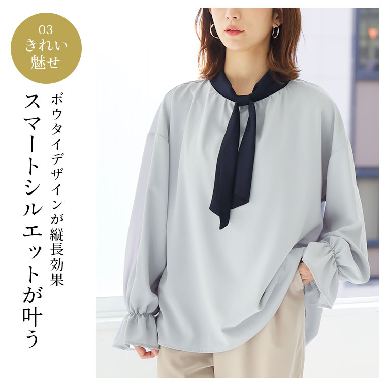 4. 大きいサイズ Rin 【選べる丈】 2WAY リボンタイ 華やかブラウス 【セレモニー】