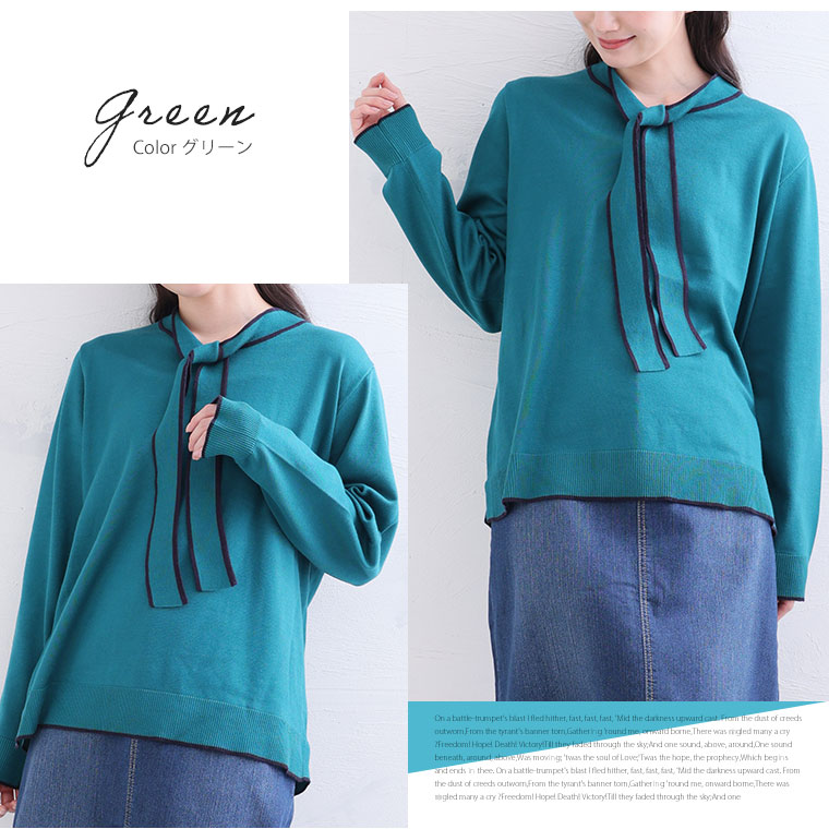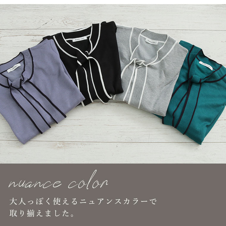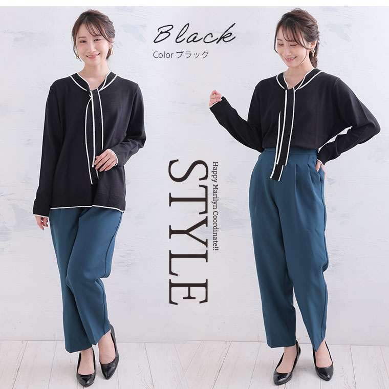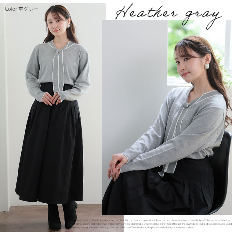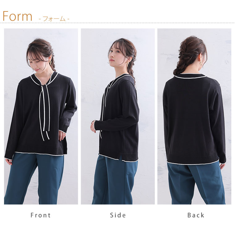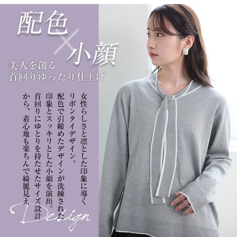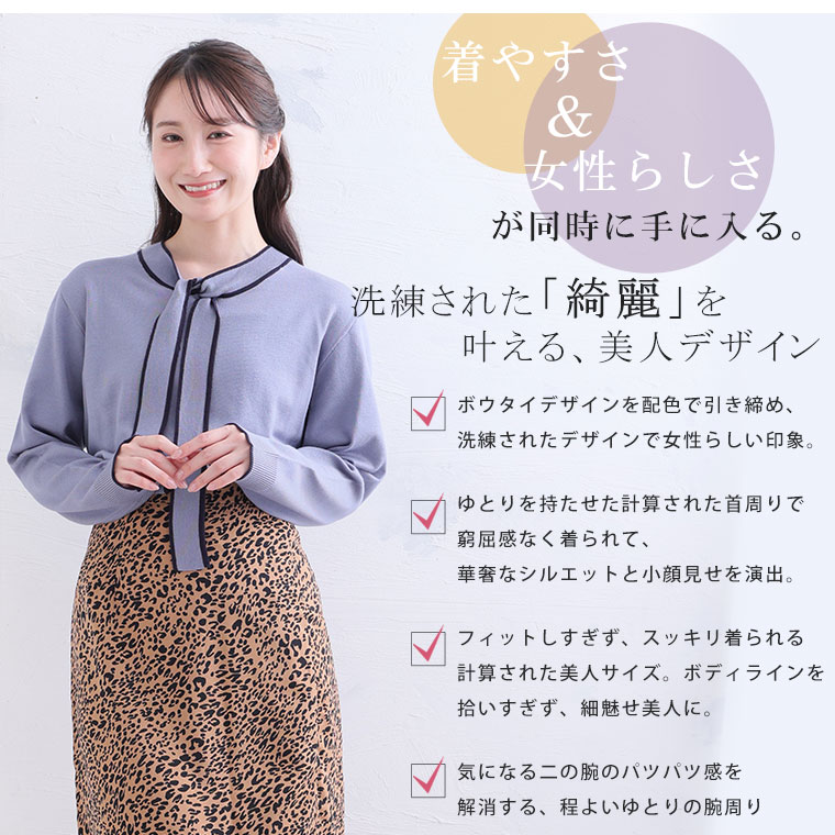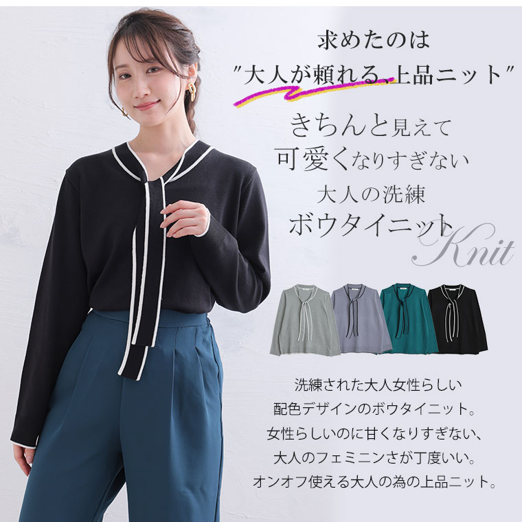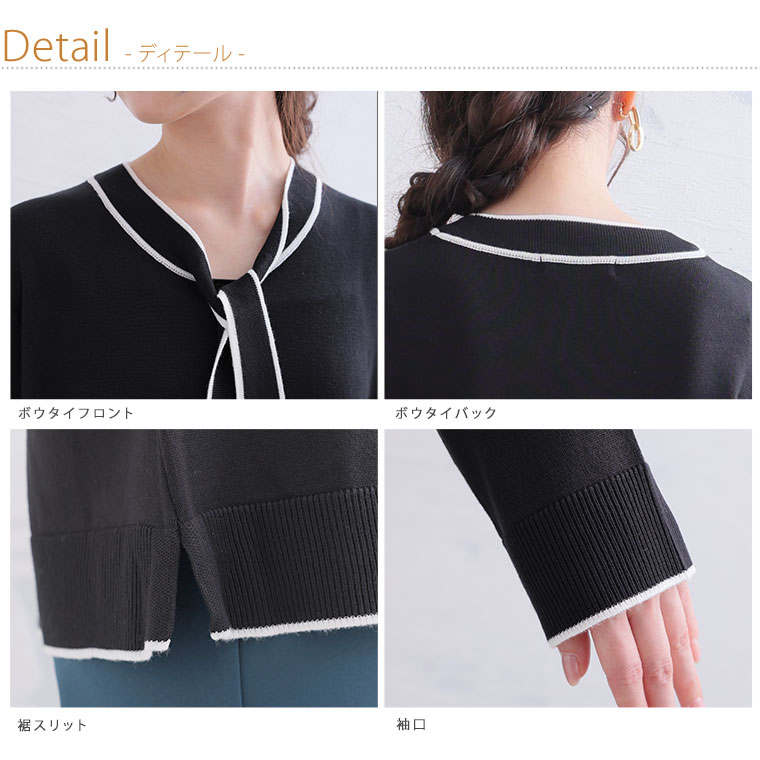 配色デザインのボウタイが大人フェミニンを演出。