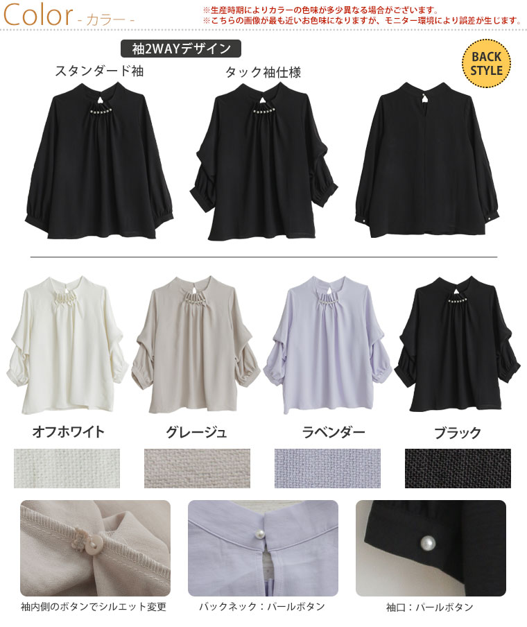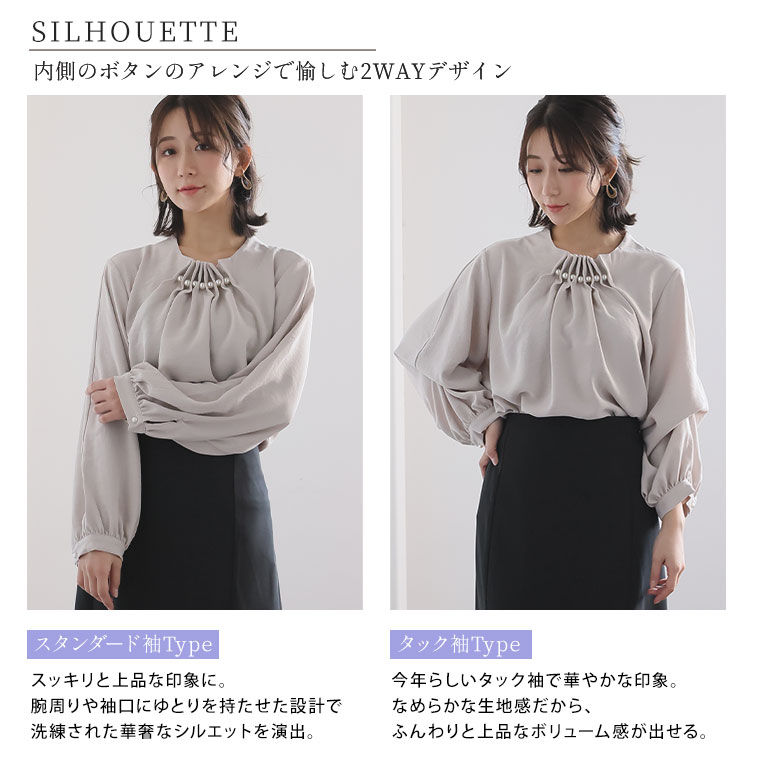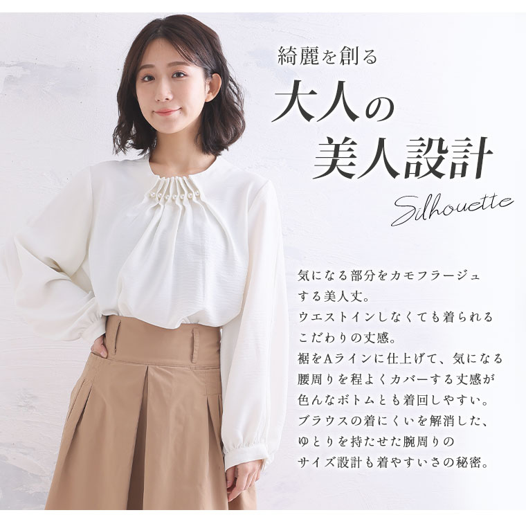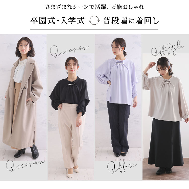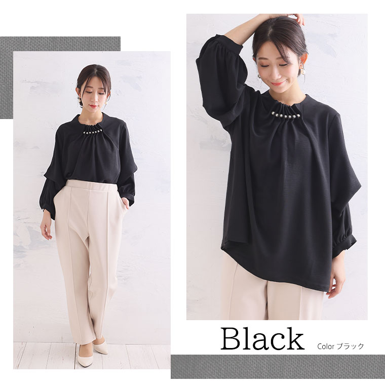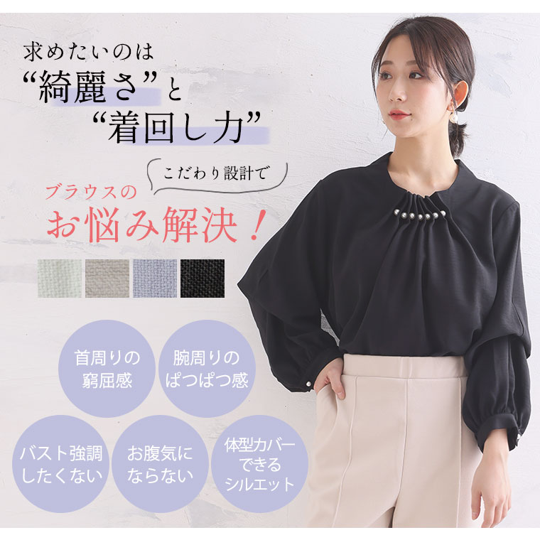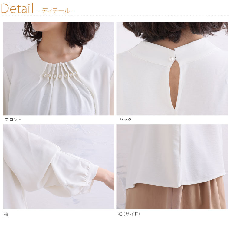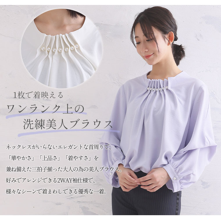上品な首元パールでエレガントStyle 2WAYポーラブラウス