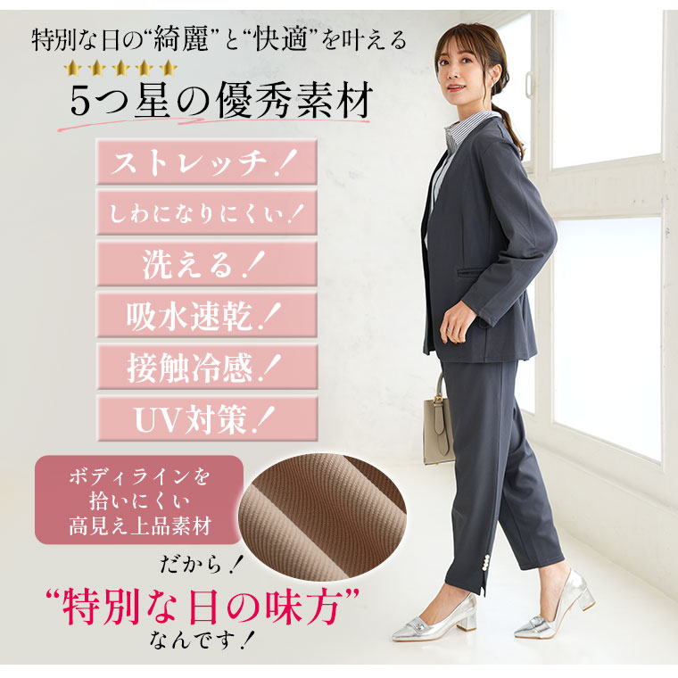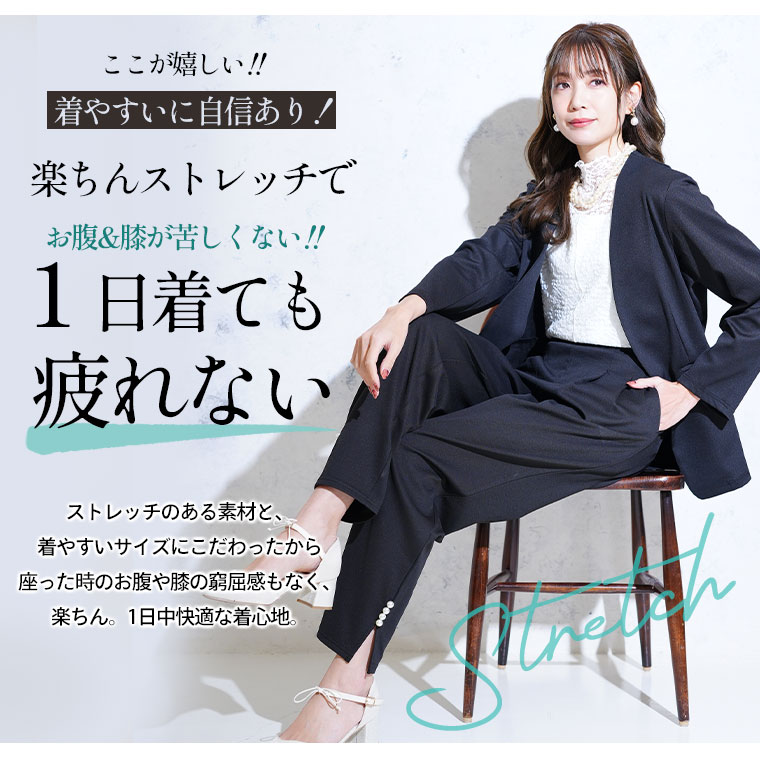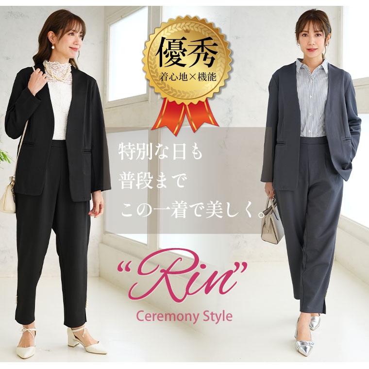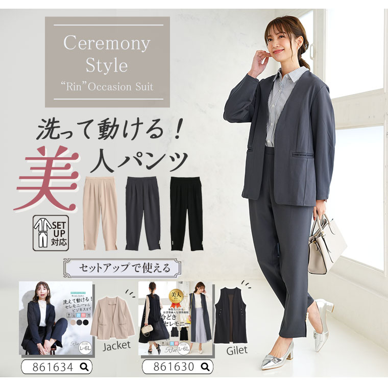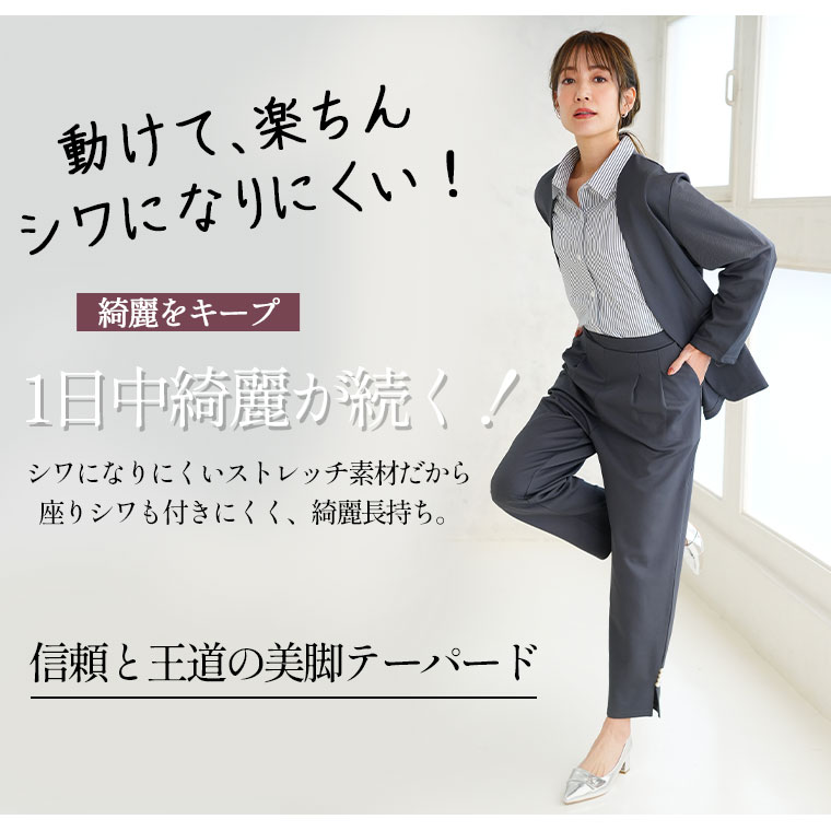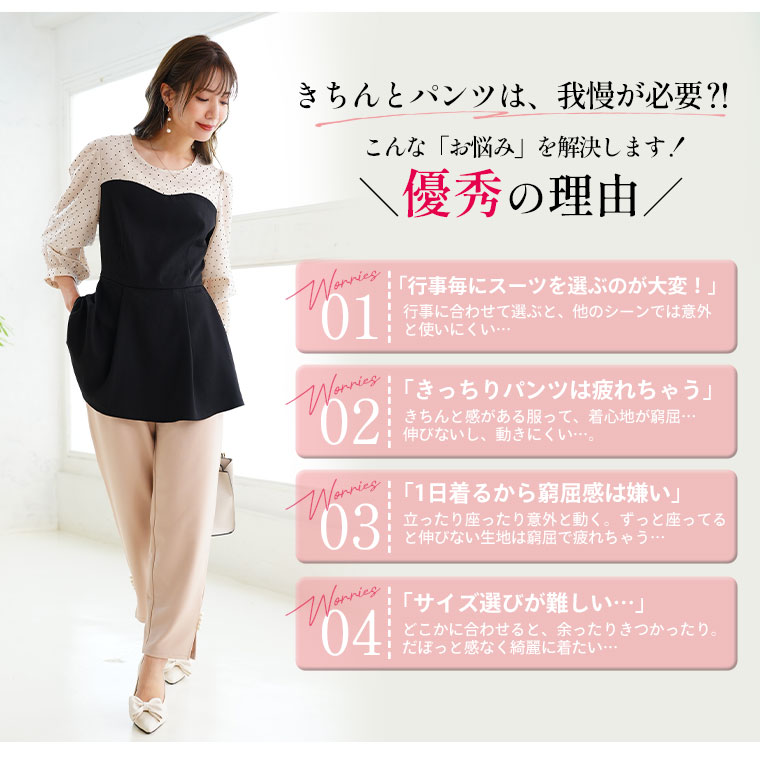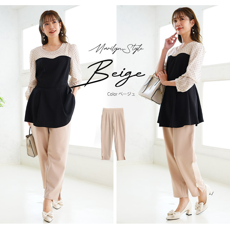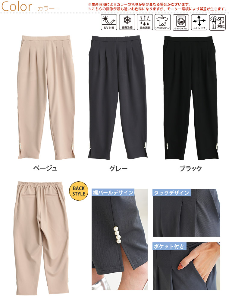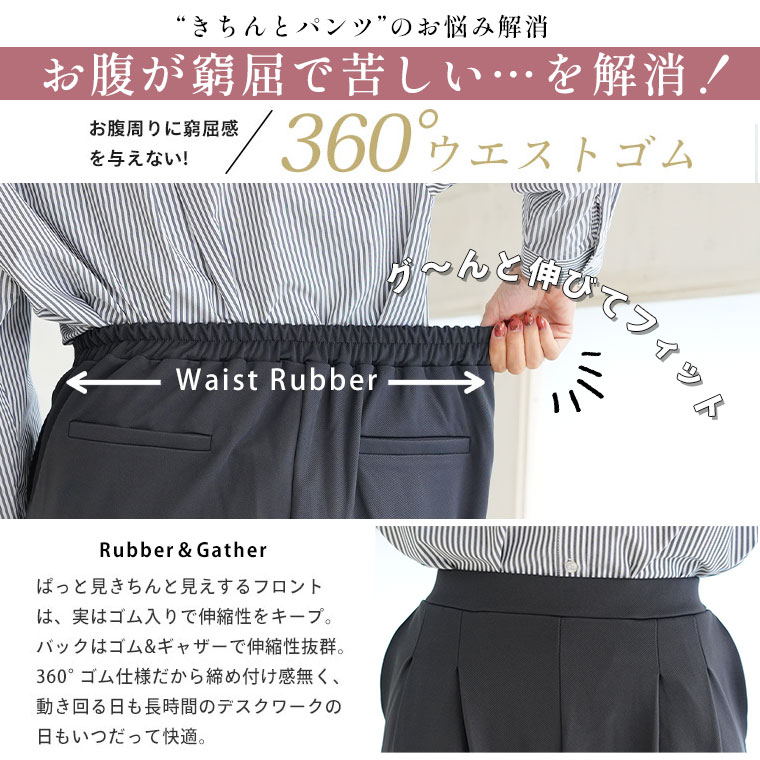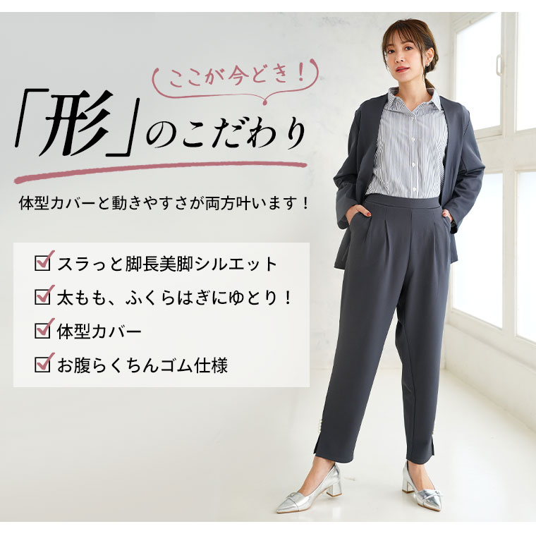 【Rin】スッキリ見えのストレッチジョーゼットタックパンツ