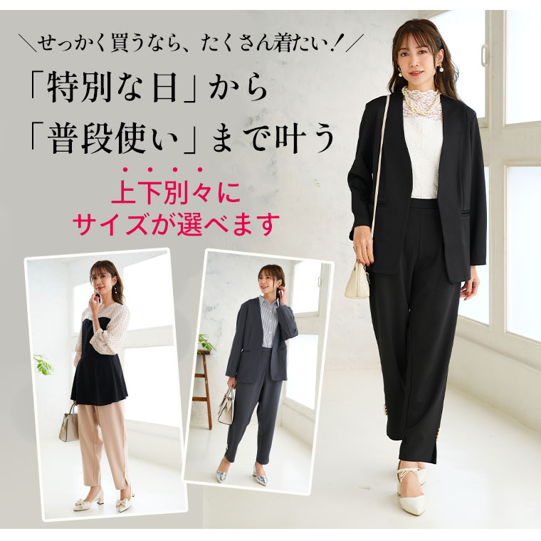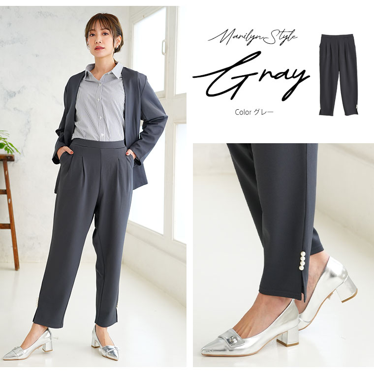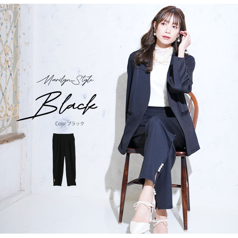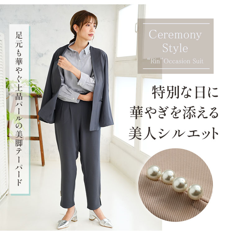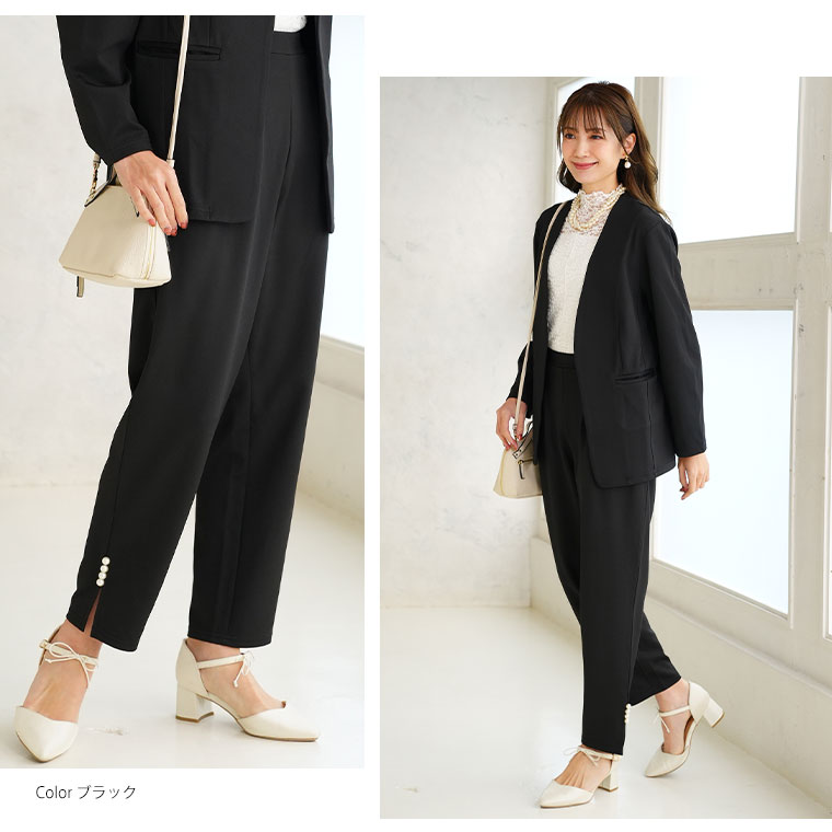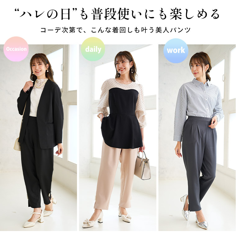 裾のスリットとパールデザインで華やかに着こなせる