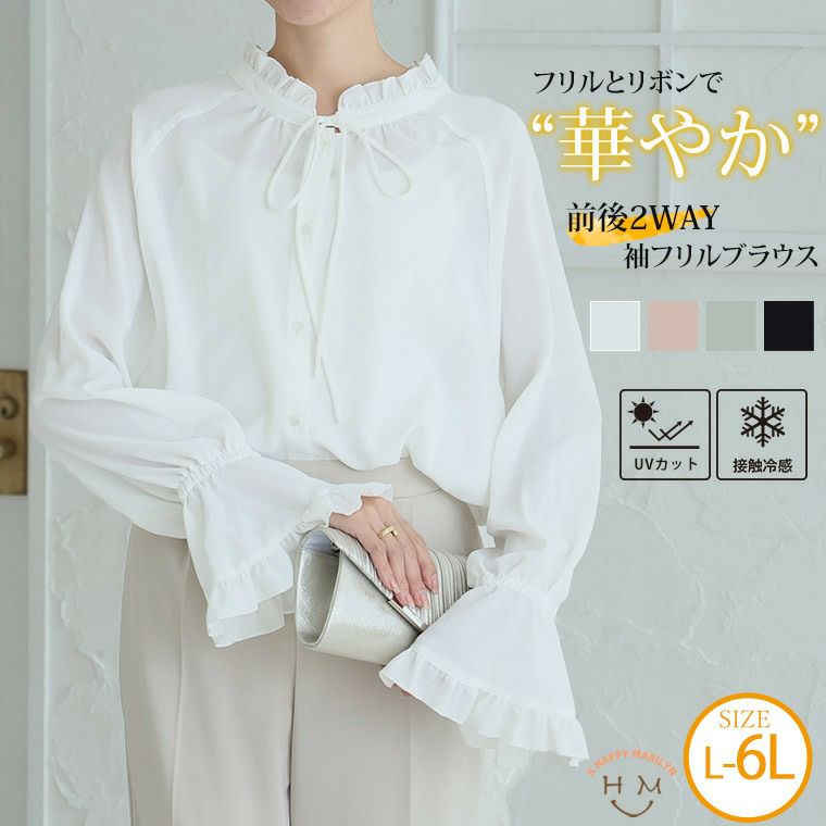 他の画像を見る シャツ トップス LL 3L 4L 5L 6L 長袖 春 春物 春服 ぽっちゃり ゆったり プラスサイズ UVカット 接触冷感 オフィス 大人 着やせ 体型カバー ビジネス 通勤 ママ 二の腕カバー 【新作◆1月11日販売】 袖フリル ブラウス | 大きいサイズの通販ならハッピーマリリン NEW 価格 ¥ 4,490 税込 お気に入りに登録する