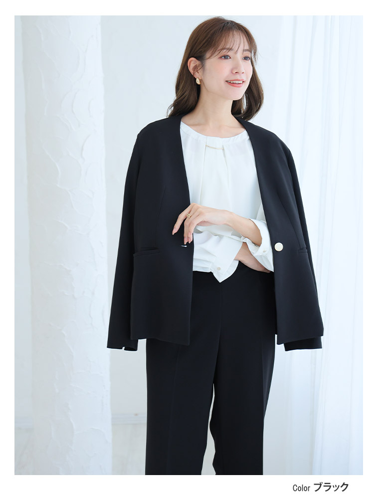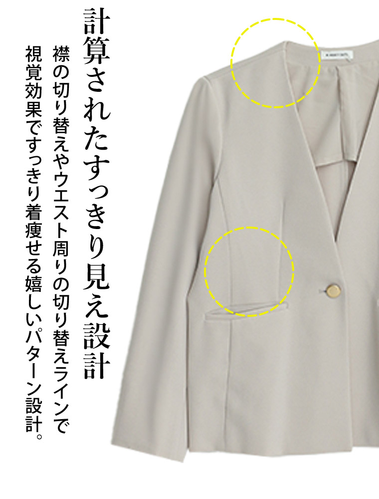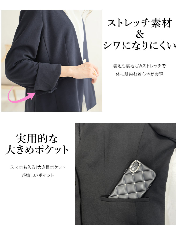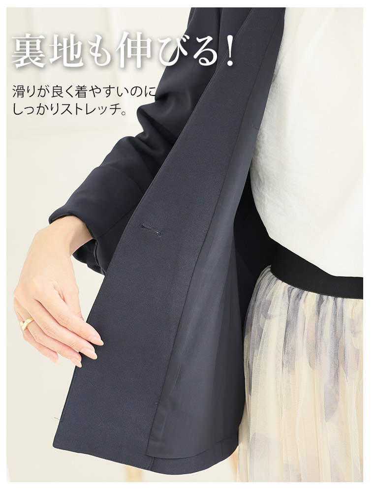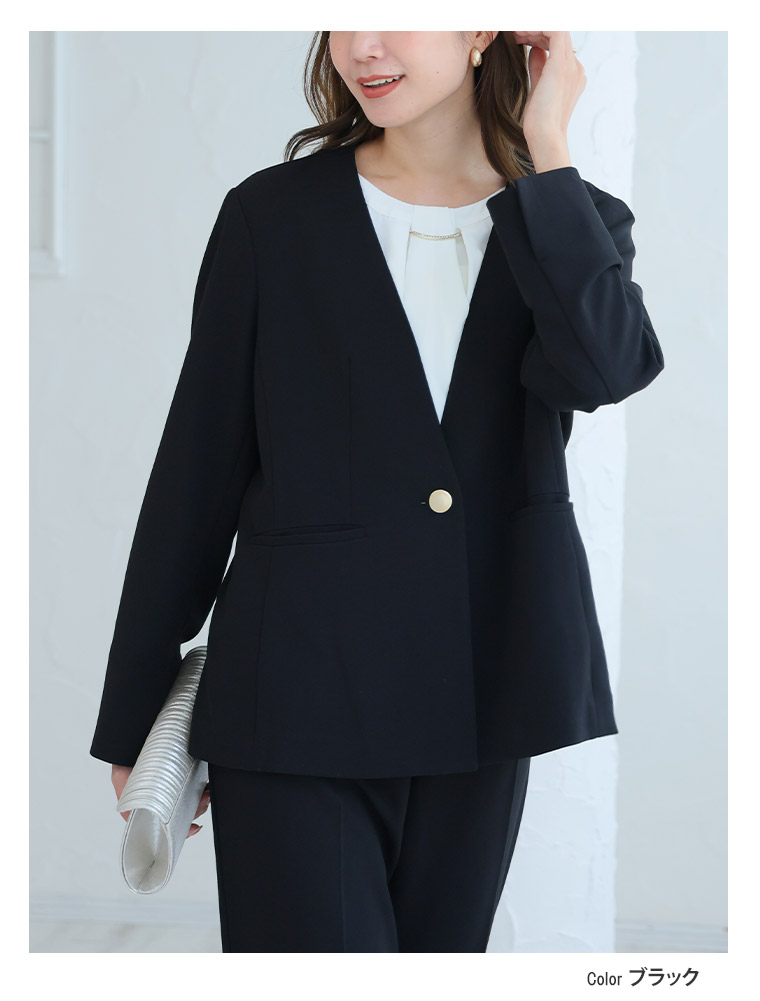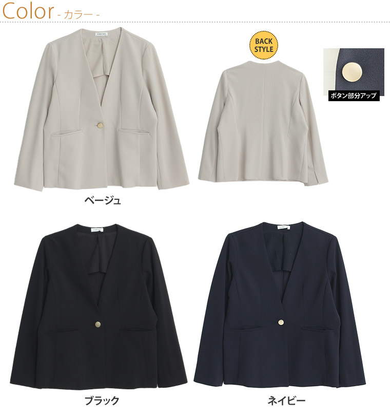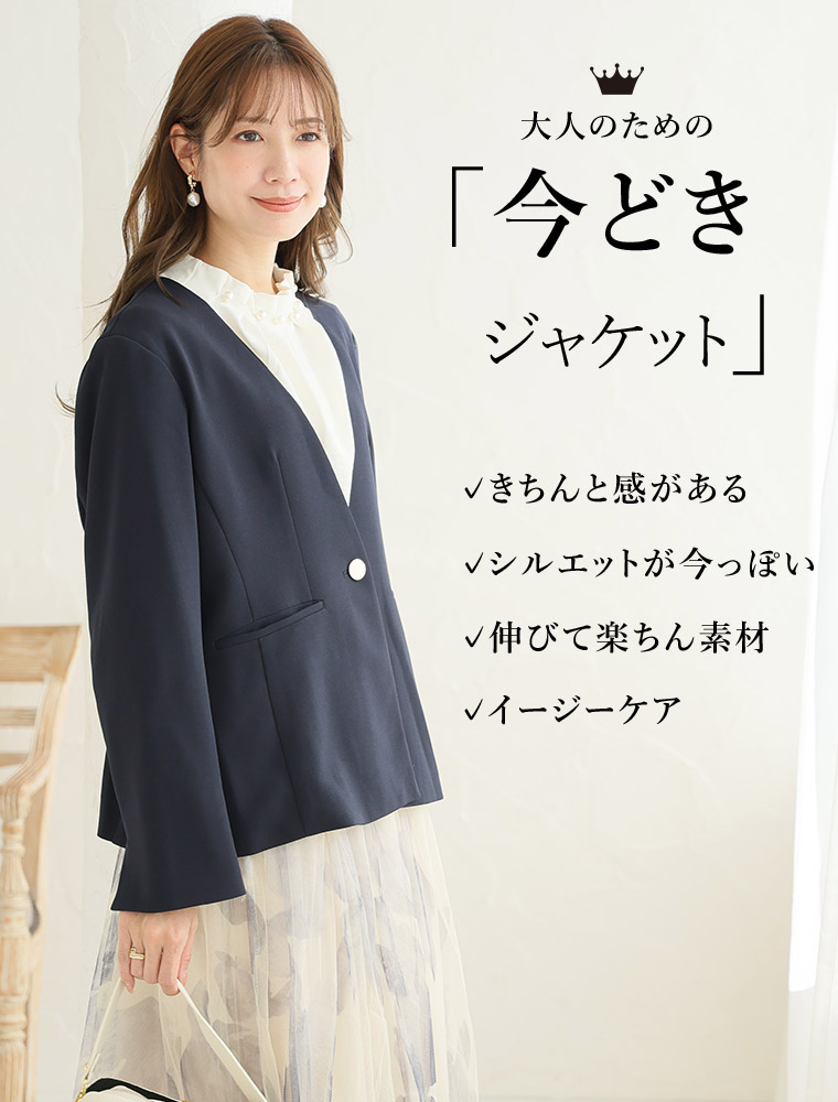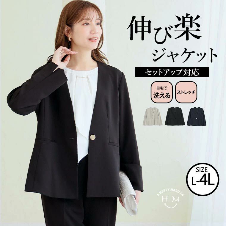 大きいサイズ 【新作◆1月10日販売】 伸び楽 Vネック ストレッチ ノーカラー ジャケット | 大きいサイズの通販ならハッピーマリリン