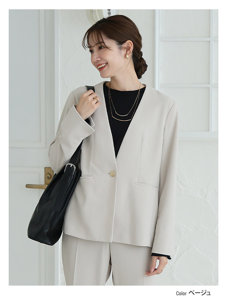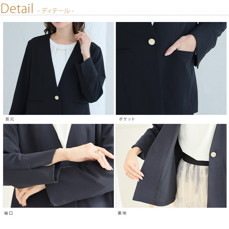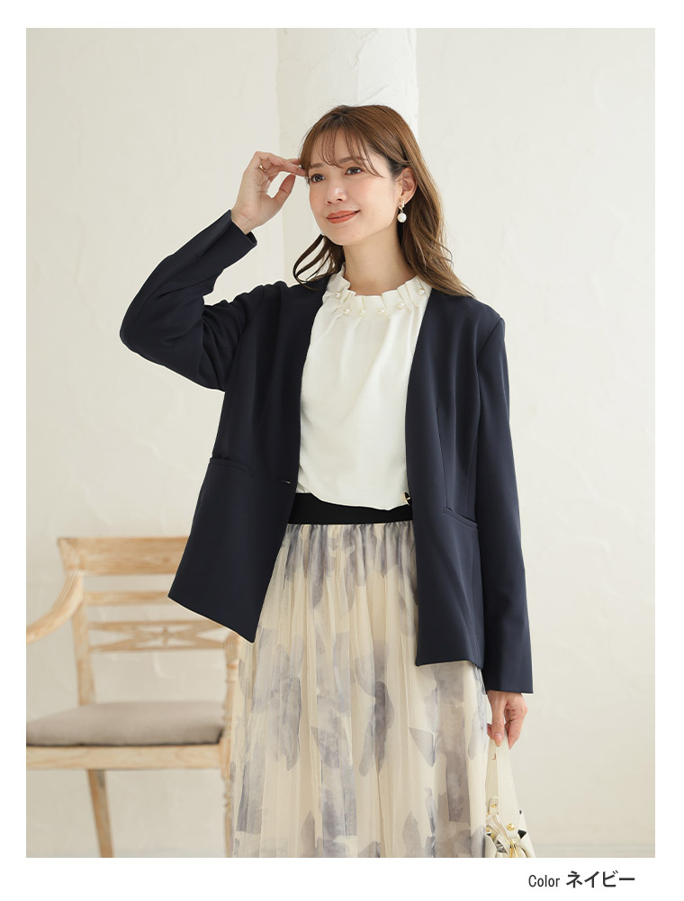 4. 大きいサイズ 【新作◆1月10日販売】 伸び楽 Vネック ストレッチ ノーカラー ジャケット | 大きいサイズの通販ならハッピーマリリン