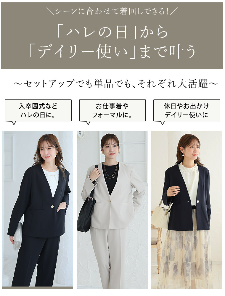 セレモニーもお仕事も普段着にも使えるヘビロテジャケット。セットアップ可能