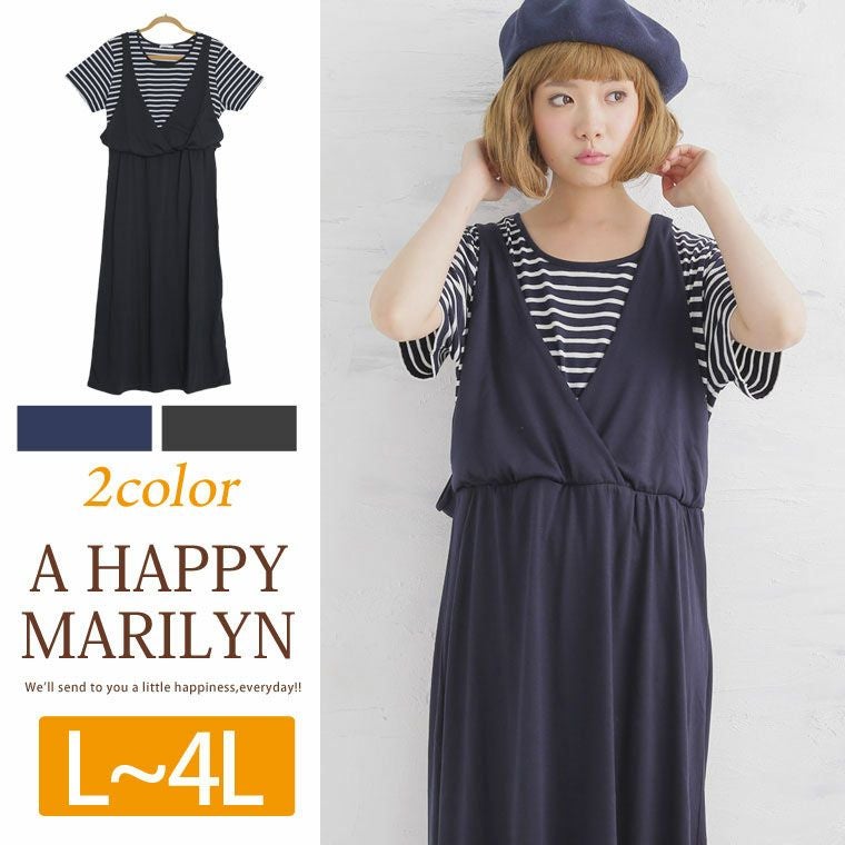 ボーダートップスで爽やかに。フェイクレイヤードワンピース