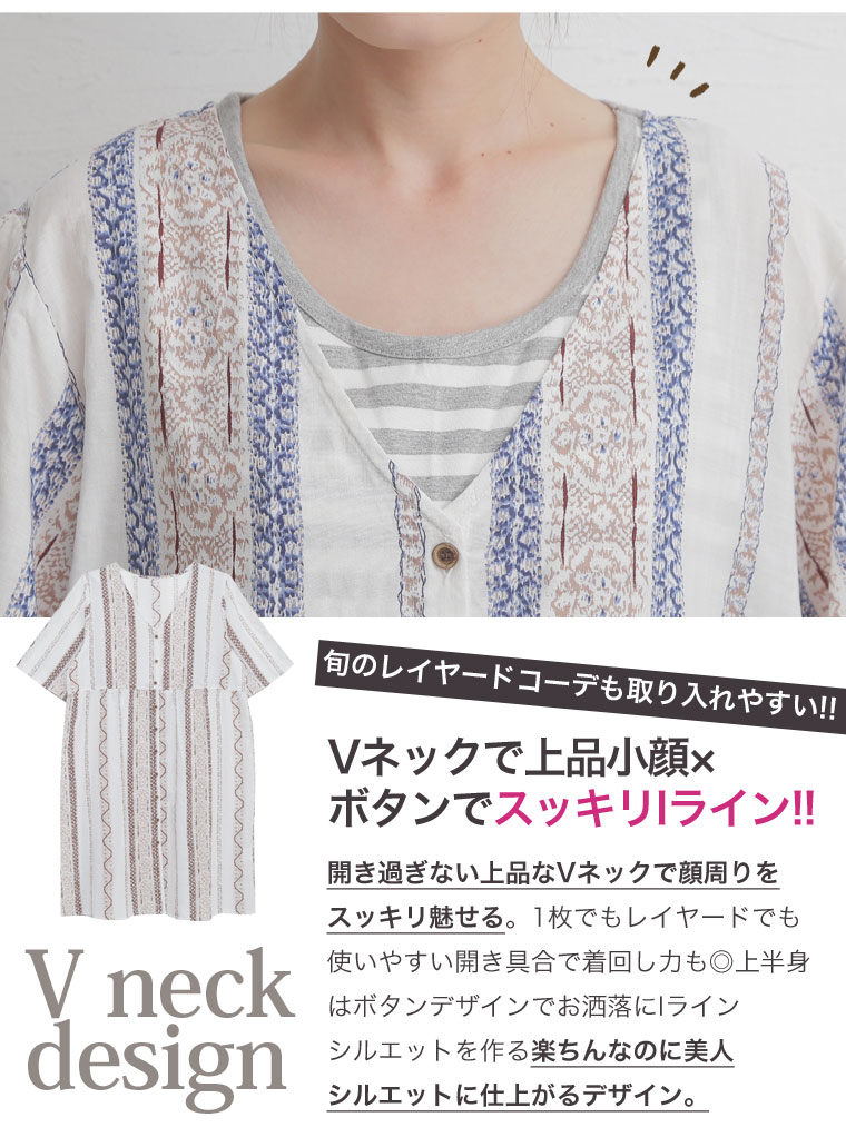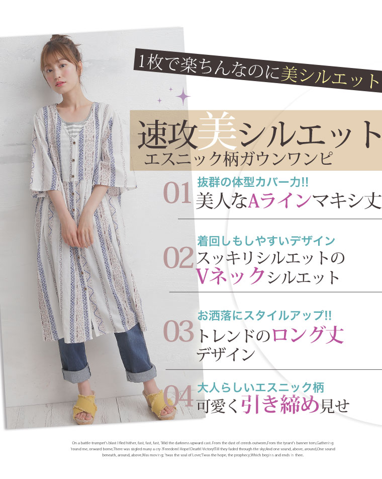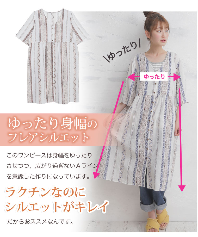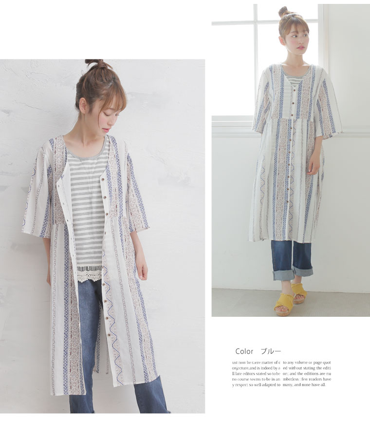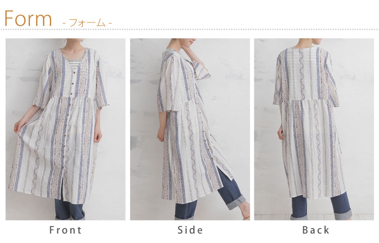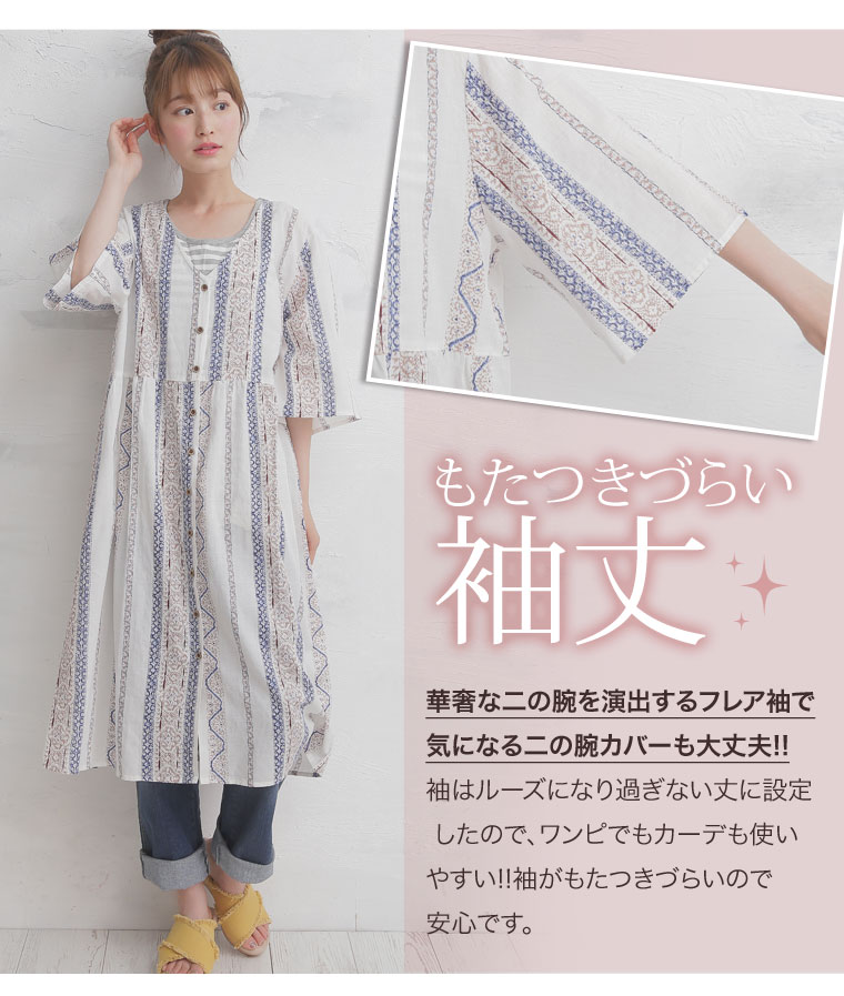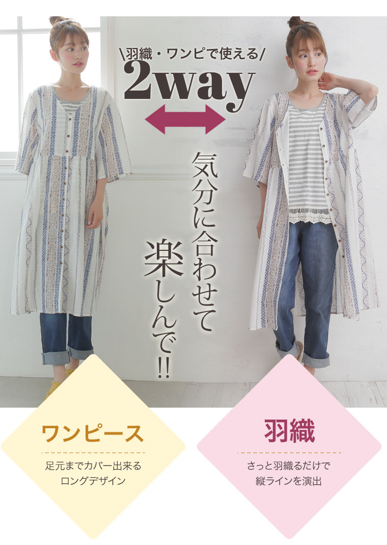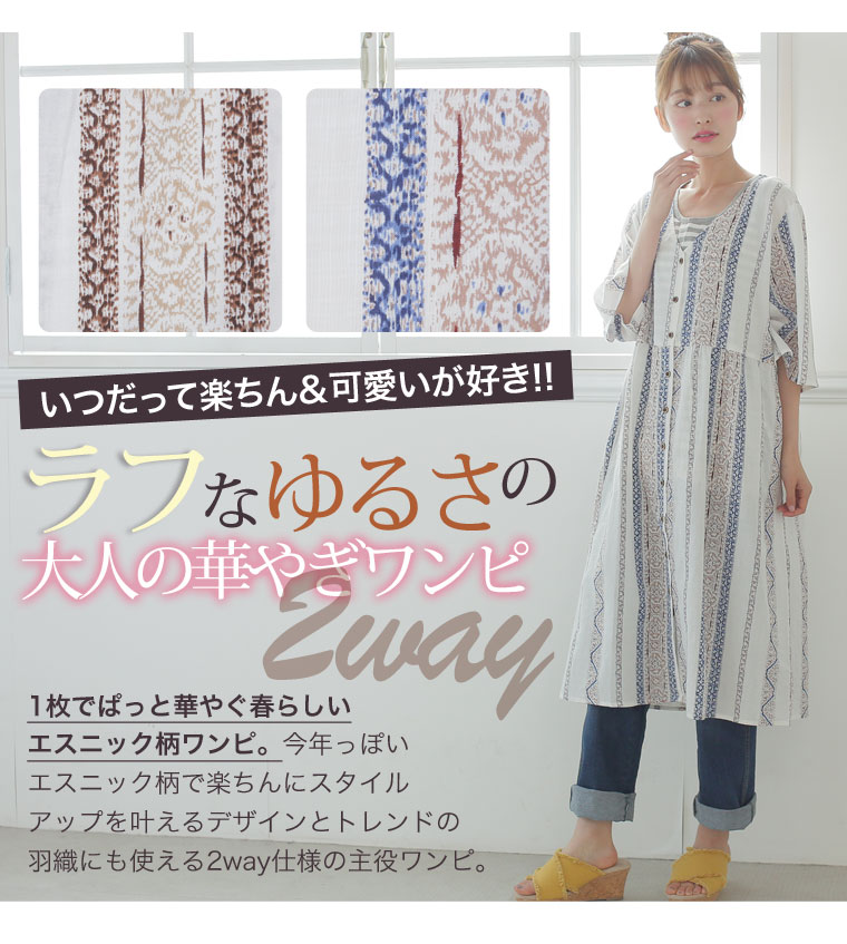 2wayで使える爽やかなストライプエスニック柄が大人可愛い!!ガウンワンピース
