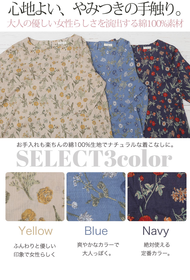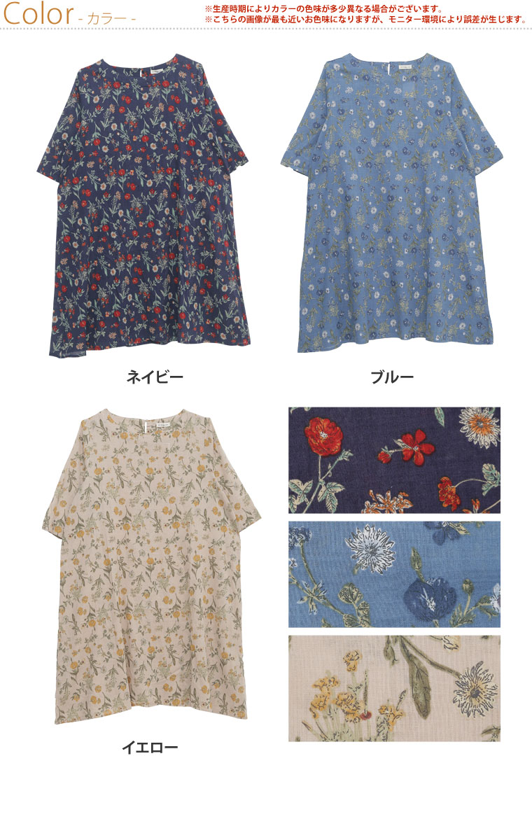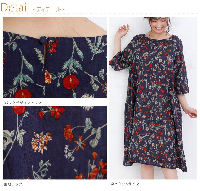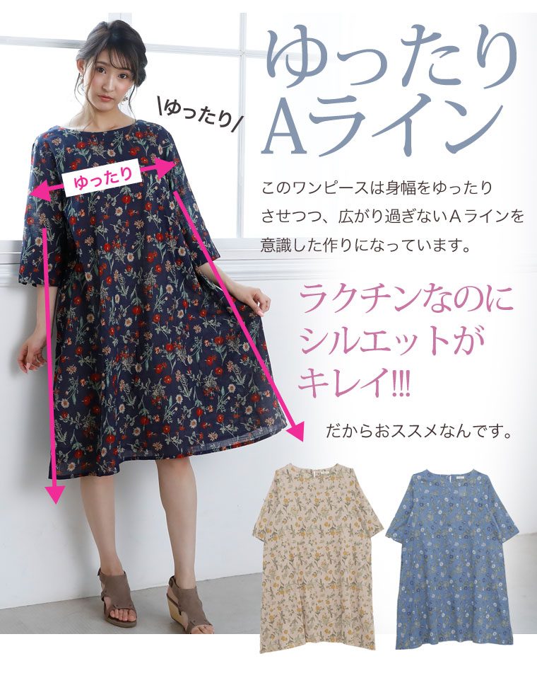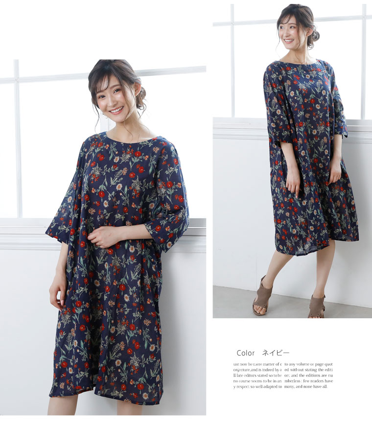 綿100%生地のナチュラル生地で大人可愛く!!ボタニカルプリントワンピース
