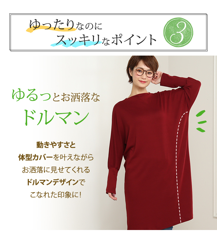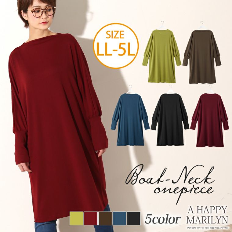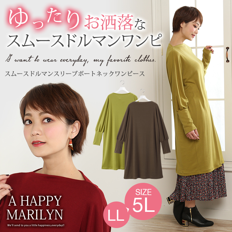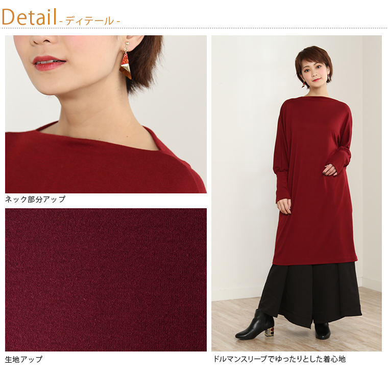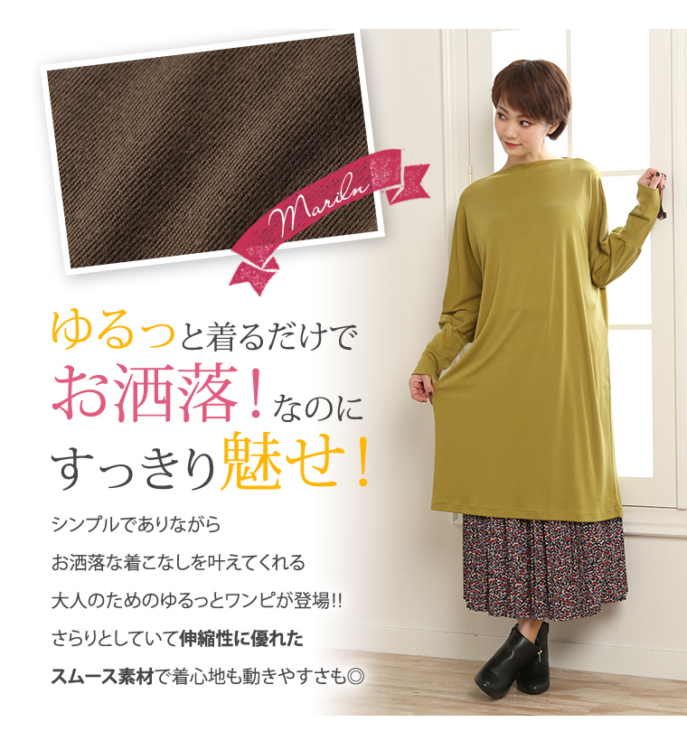 ボートネックが大人可愛い♥スムースドルマンワンピース